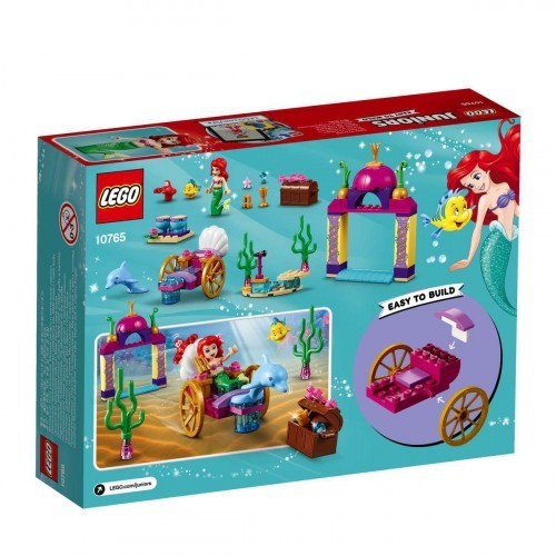 Utazz a Disney hercegnő Ariellel az előkelő delfines hintójában, miközben fellépésére siet a LEGO® Juniors 10765 Ariel víz alatti koncertjén! Találkozz Ficánkával és keressétek meg a rejtélyes kincsesládát! Majd indulj vissza a kastélyba Ariel koncertjére, ahol Sebastian már türelmetlenül várja, hogy elkezdődjön a műsor! A kedvenc LEGO Disney hercegnőd társaságában mindig akad valami mókás elfoglaltság!.