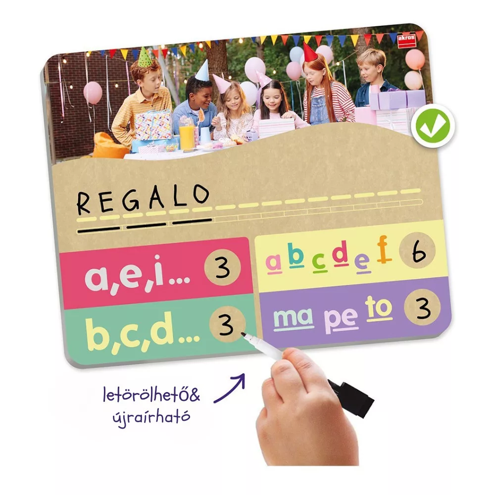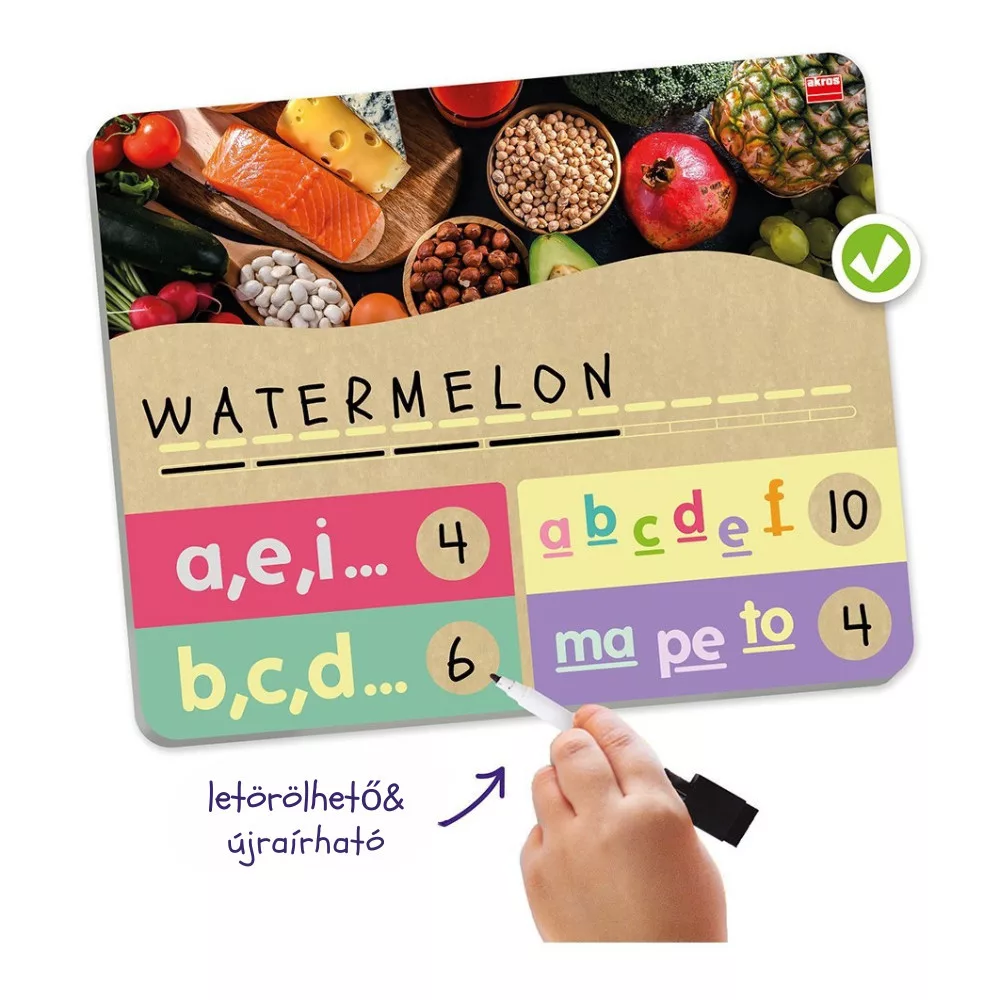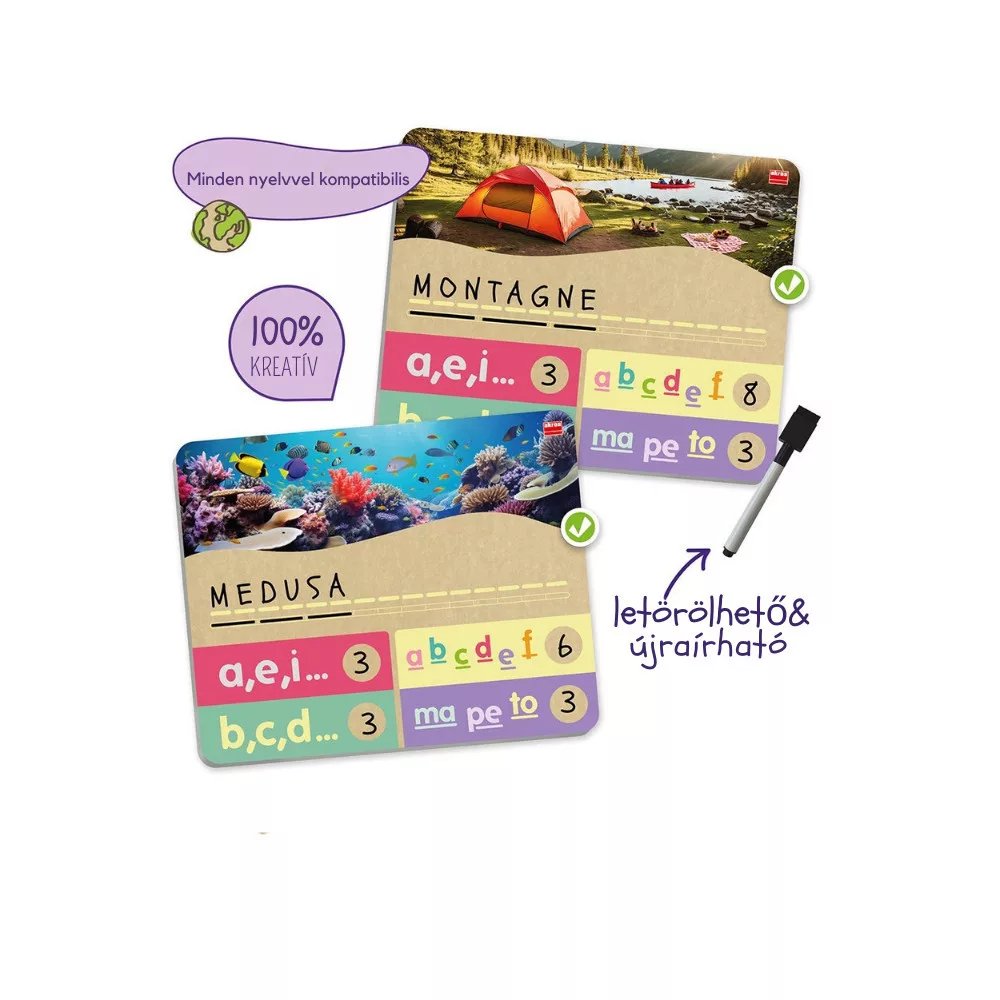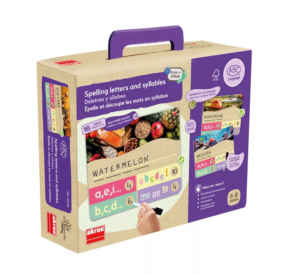 Ismerjétek meg az az Akros "Betűzd és szótagolj" elnevezésű, kedves és interaktív fejlesztőjátékát, amely a szavak izgalmas világába kalauzolja a gyermekeket! Ez a praktikus készlet 8 megfordítható, újraírható táblát kínál 16 különböző témával, valamint 8 letörölhető filctollat, hogy a tanulás valódi felfedezéssé váljon.