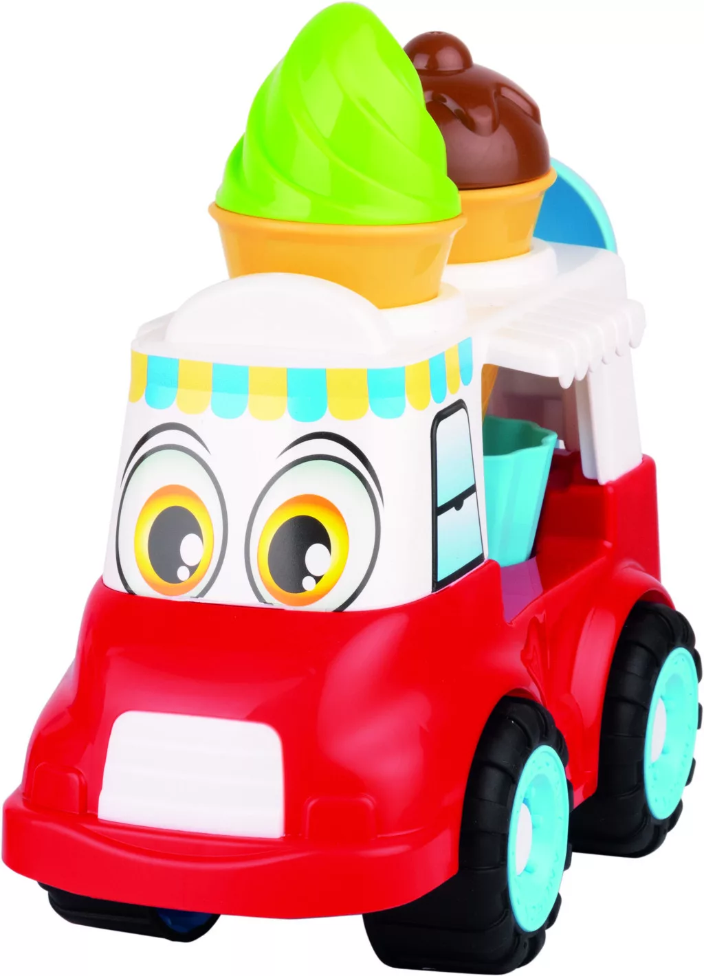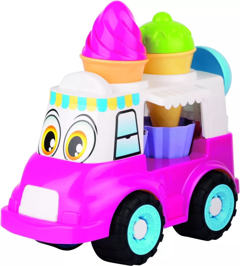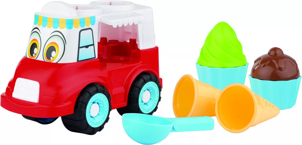 Ez a vidám, színes fagyis kocsi garantáltan elnyeri a kis fagyisárusok tetszését. A kisautóval könnyedén körbejárhatják a homokozót, a fagyis kanállal pedig finom homokfagyikat készíthetnek a barátoknak és a családnak.
