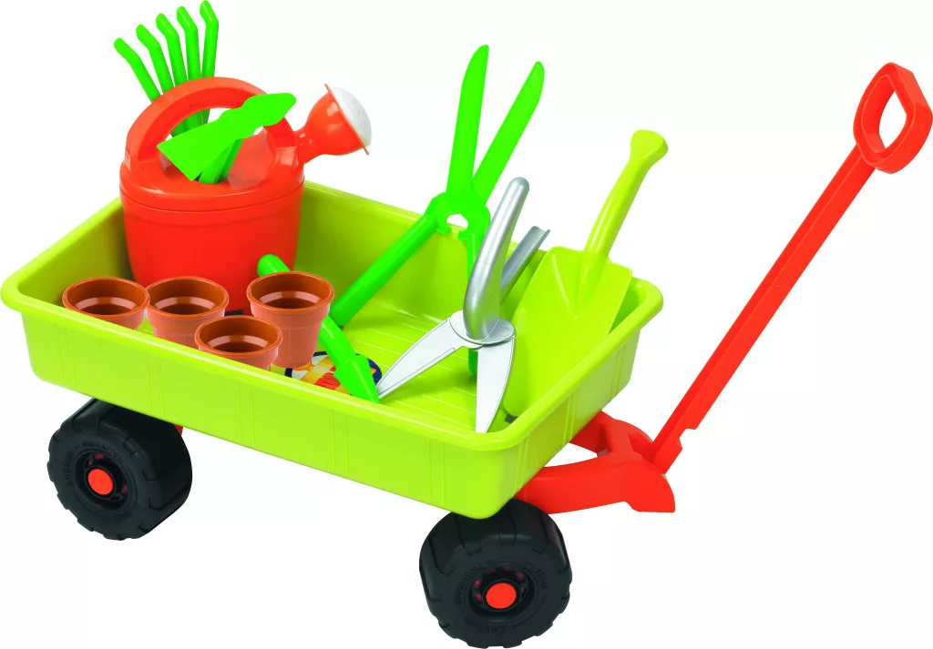 Az Androni Green Garden kerti kiskocsival a gyerekek nemcsak jól érzik majd magukat a szabadban, hanem rengeteg hasznos készséget és tudást is elsajátítanak.Az Androni Green Garden kerti kiskocsi eszközökkel tökéletes választás a kis segítők számára! Ez a vidám, zöld kiskocsi minden olyan eszközt tartalmaz, amire a gyerekeknek szükségük lehet a kis kertészmunkákhoz.
