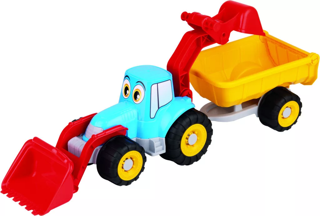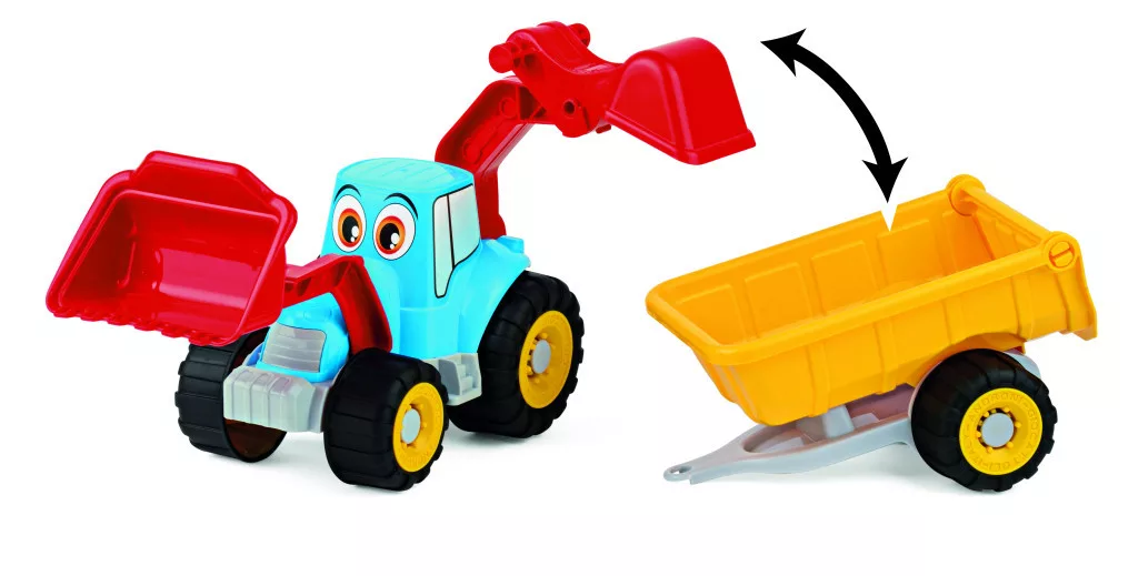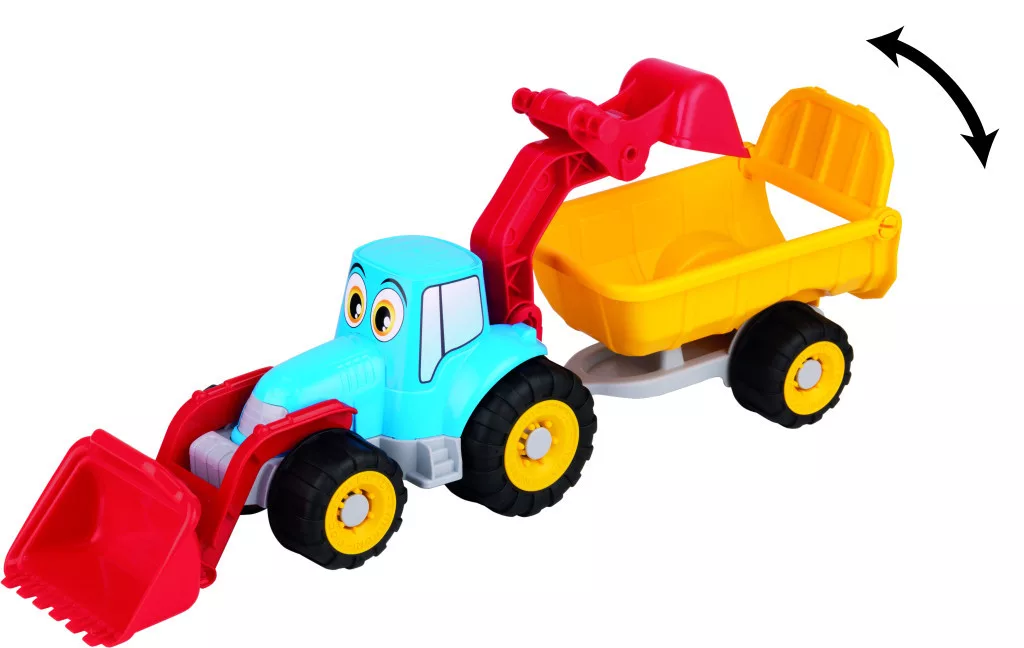 Ez a masszív, színes markoló és utánfutó remek szórakozást nyújt a gyerekeknek, akár a homokozóban, akár a szobában játszanak vele. A puha kerekeknek köszönhetően a játék csendes, és nem karcolja meg a padlót.