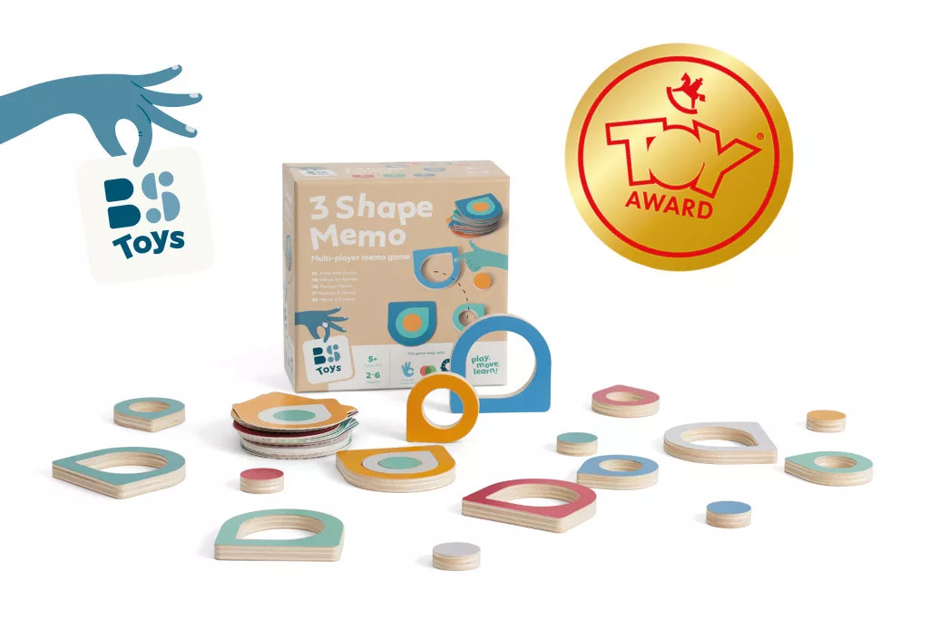 Rendkívül büszkén jelentjük be, hogy a 3 Shape Memo játékunk elnyerte a Toy Award Name díjat 2025-ben ! Ez a tekintélyes elismerés kiemeli a márka elkötelezettségét olyan innovatív, kiváló minőségű játékok alkotása iránt, amelyek játék közben inspirálják a gyerekeket szerte a világon.