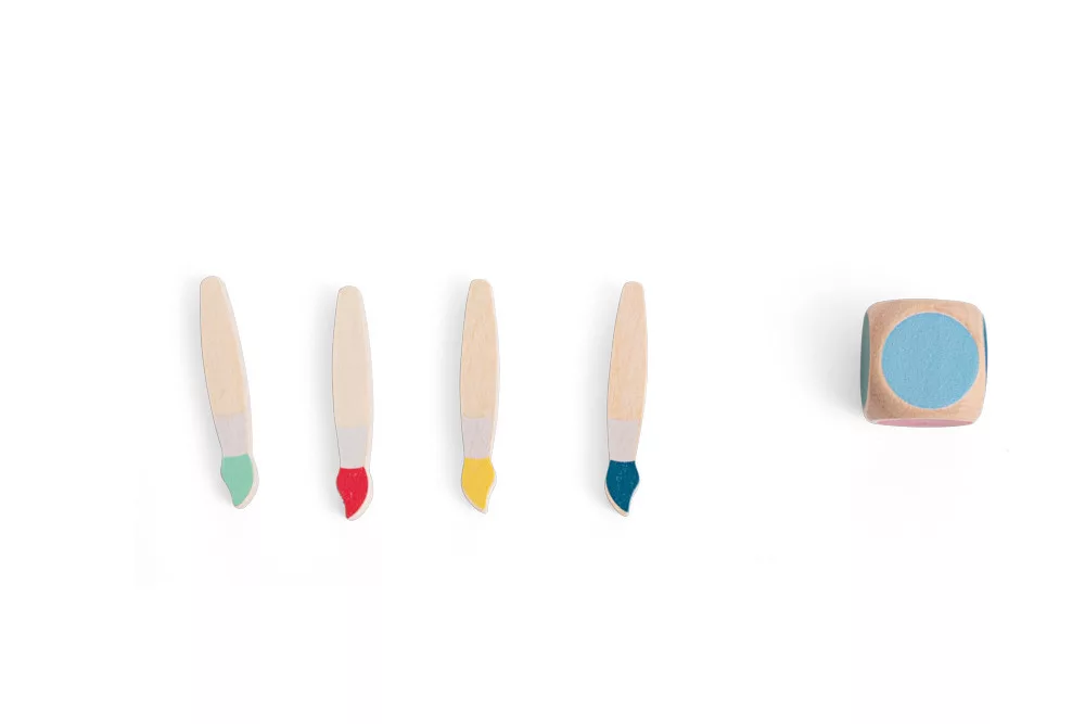 A játék nagyon egyszerű: Dobj a kockával és húzz ki a dobott színnel azonos ecsetet. Vajon ki emlékszik a legjobban és kinek lesz a legnagyobb ecsetgyűjteménye?