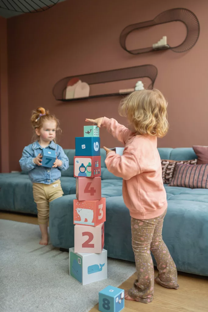 Ezzel a színpompás toronyépítővel, gyermekünk játékosan ismerkedhet meg a számokkal és különféle állatokkal. Indítsd be a kreativitásukat a könnyű, erős kartonkockák egymásra rakásával, és építsétek fel együtt a tornyot. A toronyépítés kiválóan fejleszti játék közben gyermekünk szem-kéz koordinációját és egyéb készségeket is. Építsétek függőlegesen vagy akár vízszintesen is, a játék segítségével tudjátok gyakorolni a kicsi és nagy fogalmát illetve a sorrendiséget, hogy kicsitől nagy felé vagy a nagytól kicsi felé haladtok.