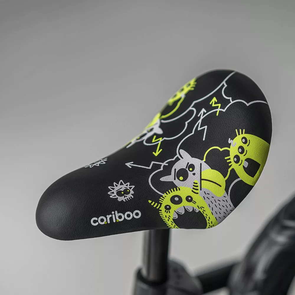 A jól kontúrozott, ergonomikus ülés nemcsak kényelmes, hanem biztonságos is. Az ülés hátsó része enyhén megemelt, így a gyermek nem csúszik le a kerékpárról. Kényelmes, puha, biztonságos kivitelű fogantyúk védik a kisgyerek kis kezeit.
