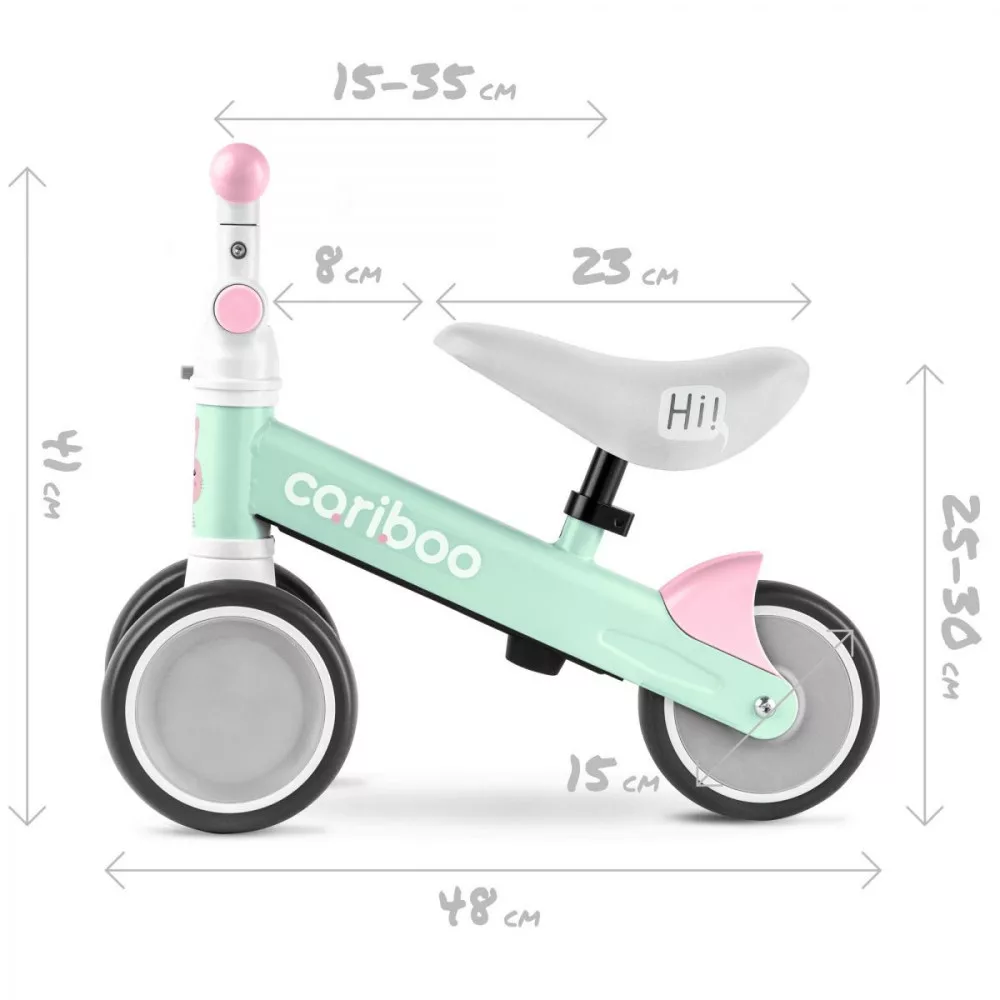 A Cariboo Friends kismotor ergonomikus üléssel rendelkezik, amelyen kényelmesen ülhet a gyermek. az ülés magassága a talajtól 25-30 cm-ig állítható, a kismotor 80-95 cm magasságú gyerekek számára igazán megfelelő.