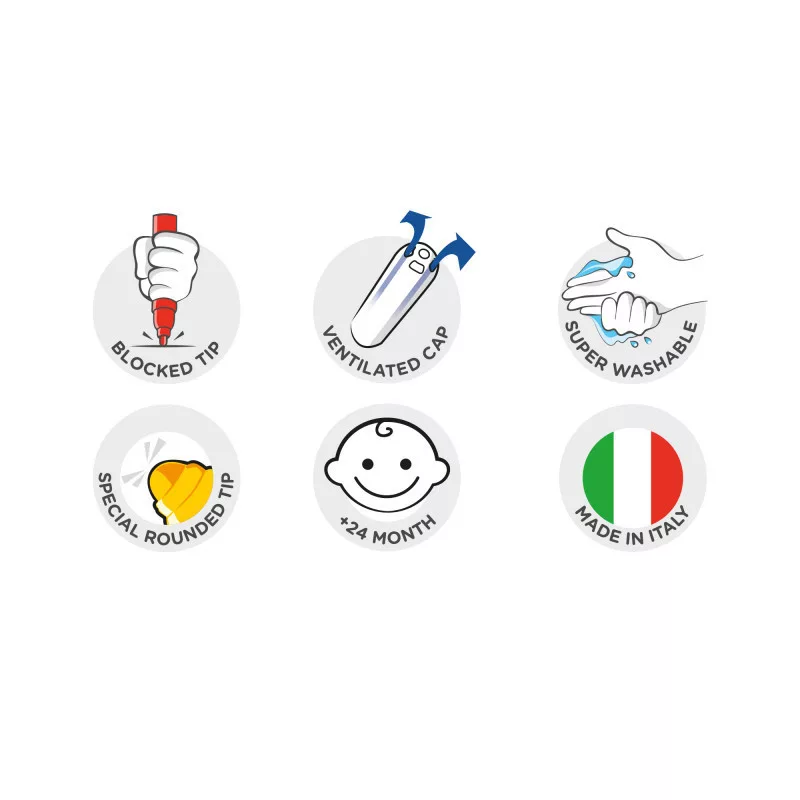 • 8 db 2+ extra mosható filctollat ?tartalmaz. Könnyen mosható,vízbázisú tinta. Kerek hegy, 3 mm széles, nyomásálló.