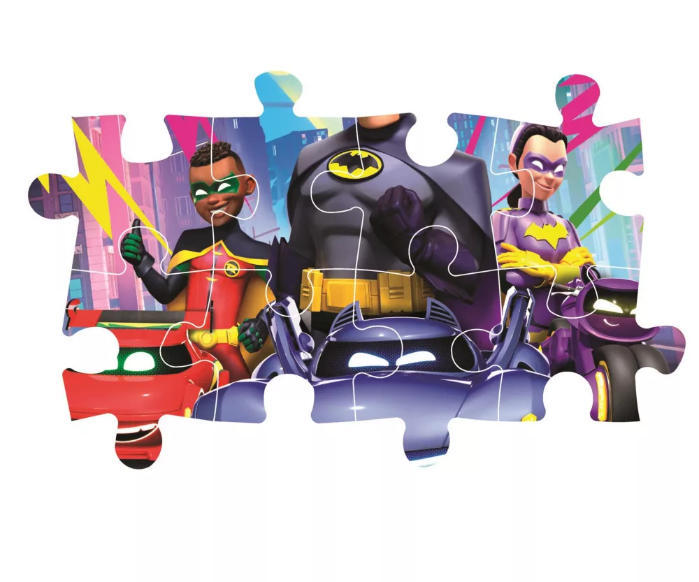 Készen álltok egy izgalmas utazásra Batwheels városában? Ez a Clementoni 104 darabos puzzle tökéletes választás a kis Batman rajongók számára, 4 éves kortól.