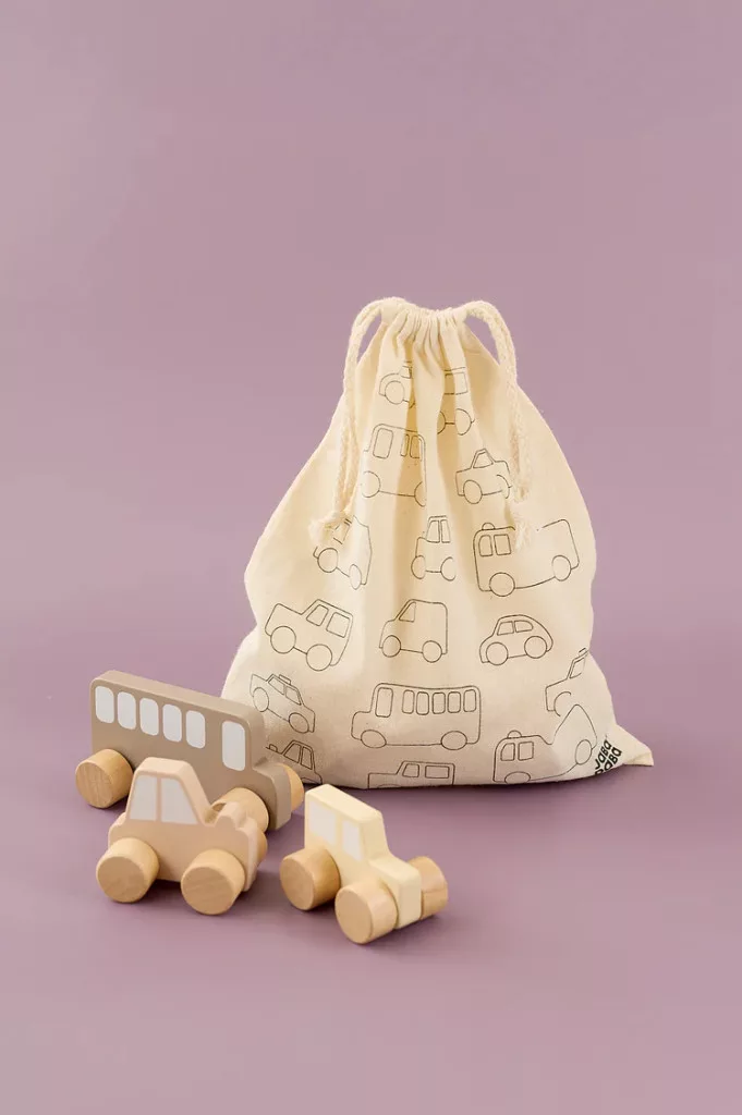 Aranyos kisautók a legkisebbeknek. Az autók masszív kerekekkel rendelkeznek, így könnyedén mozoghatók. A játékhoz 8 különböző jármű tartozik, amelyek egy szövetzsákba vannak csomagolva, így utazáskor is mindig magaddal viheted azokat.