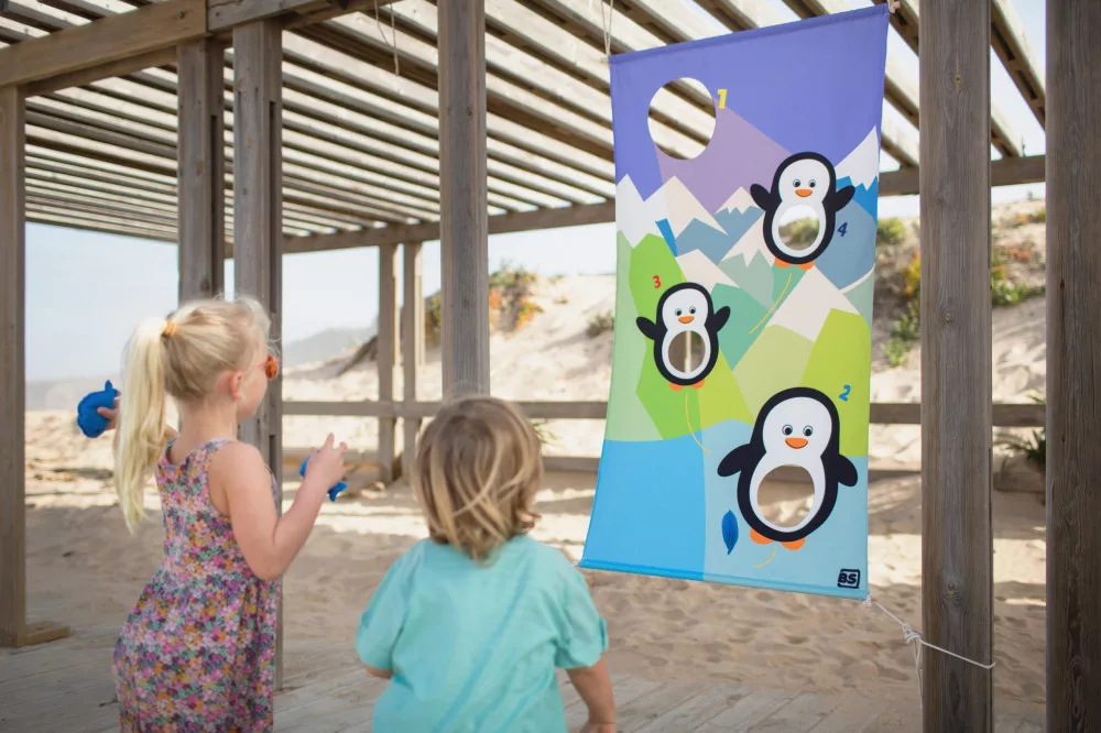 Tedd boldoggá a pingvineket! Ezek az éhes pingvinek egy kis halra vágynak! A kötelek segítségével akassza fel a vásznat, és dobjátok a halakat a pingvinek hasába.