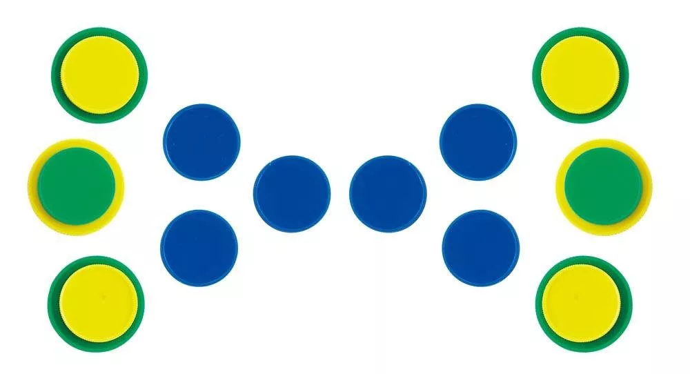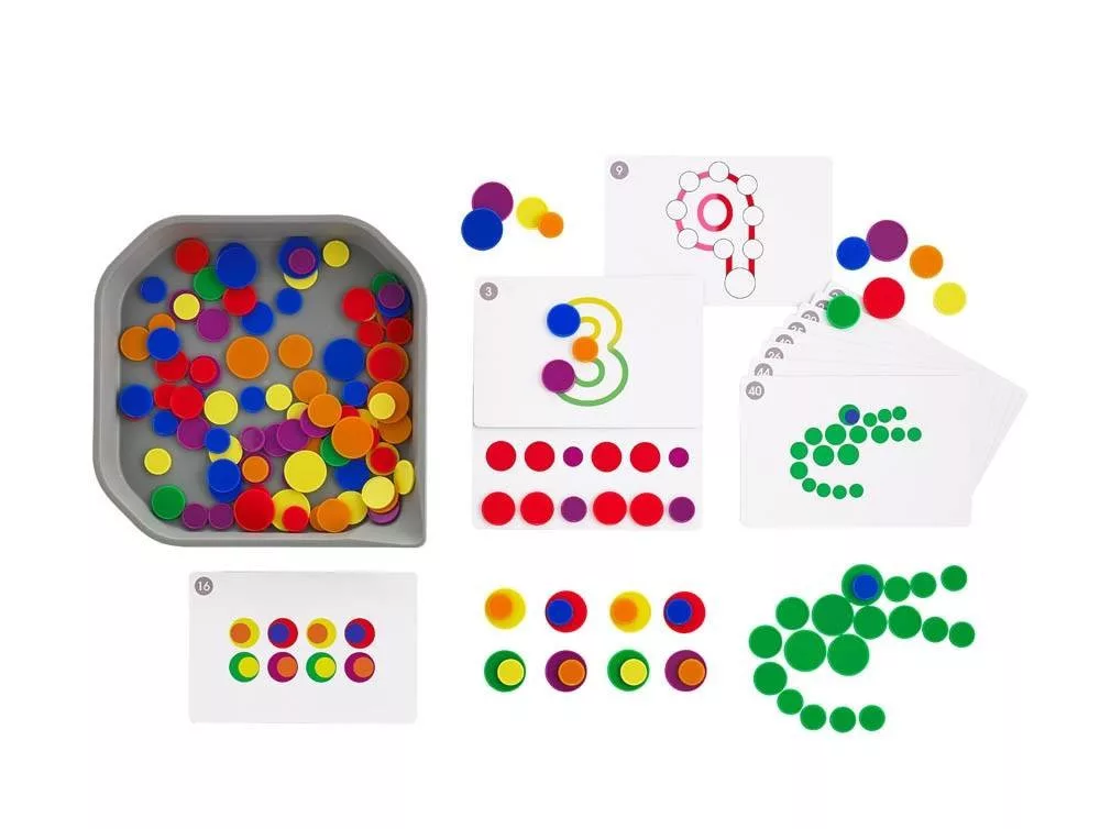 A gyerekek a színes kis zsetonok segítségével tudnak játszani és mintákat alkotni. A korongjáték kiváló a számok megtanulásához, minták készítéséhez, párosításhoz, szortírozáshoz. Fejleszti a kreativitást és a finommotorikus készségeket is.