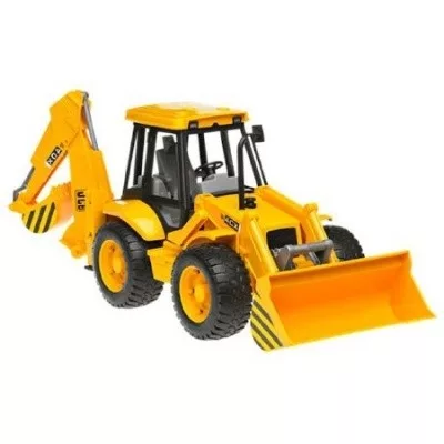 JCB 4CX markológép 1:16 méretarányban gumikerekekkel, stabilizáló támasztékkal, forgatható vezetőüléssel, funkcionáló első rakodóval, hátsó markolókanállal.
