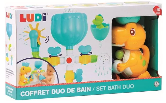 A szett egy mosolygós óriás dinoszauruszt, különbözőképpen összeilleszthető csöveket és tölcséreket, valamint egy spriccelős baba dinoszauruszt tartalmaz.