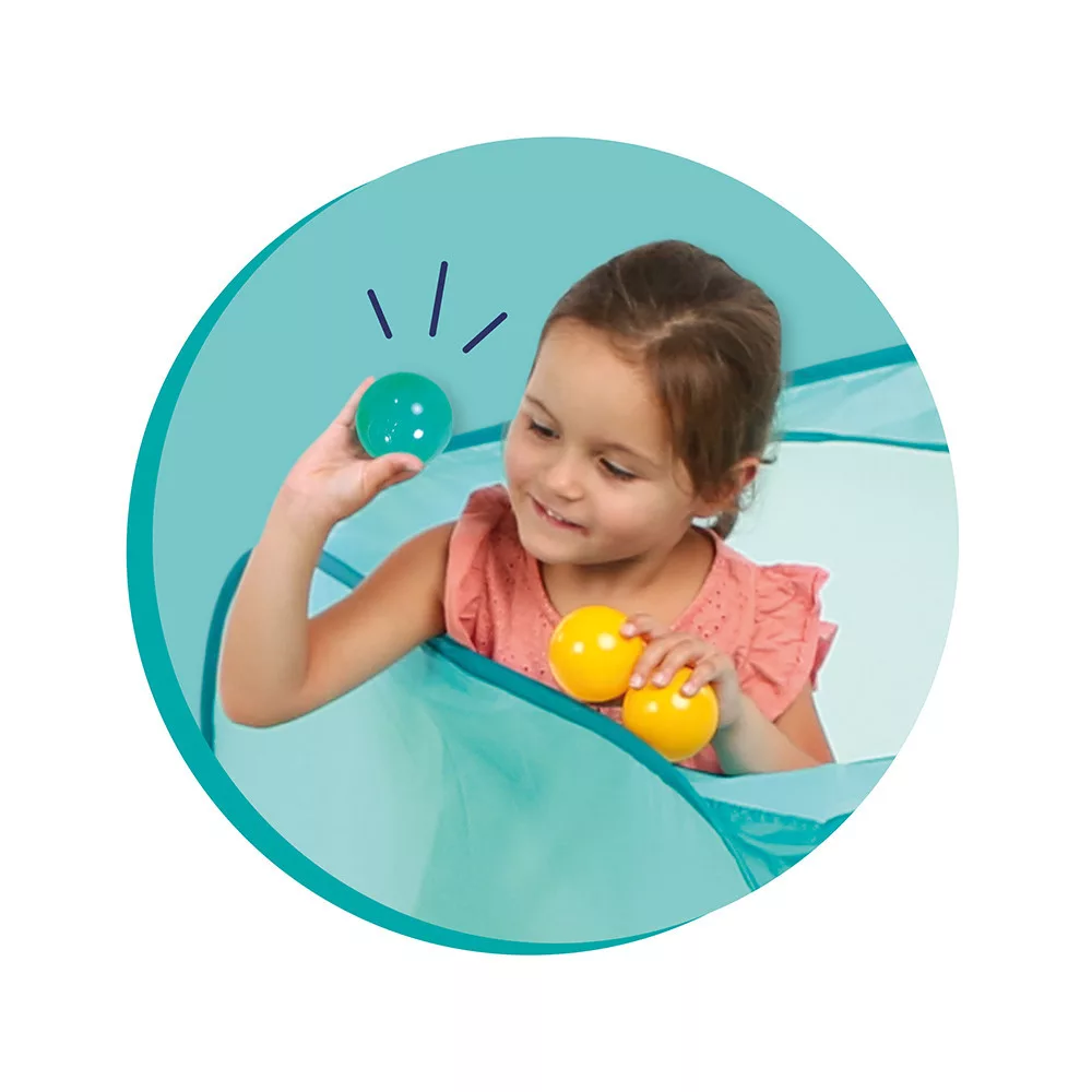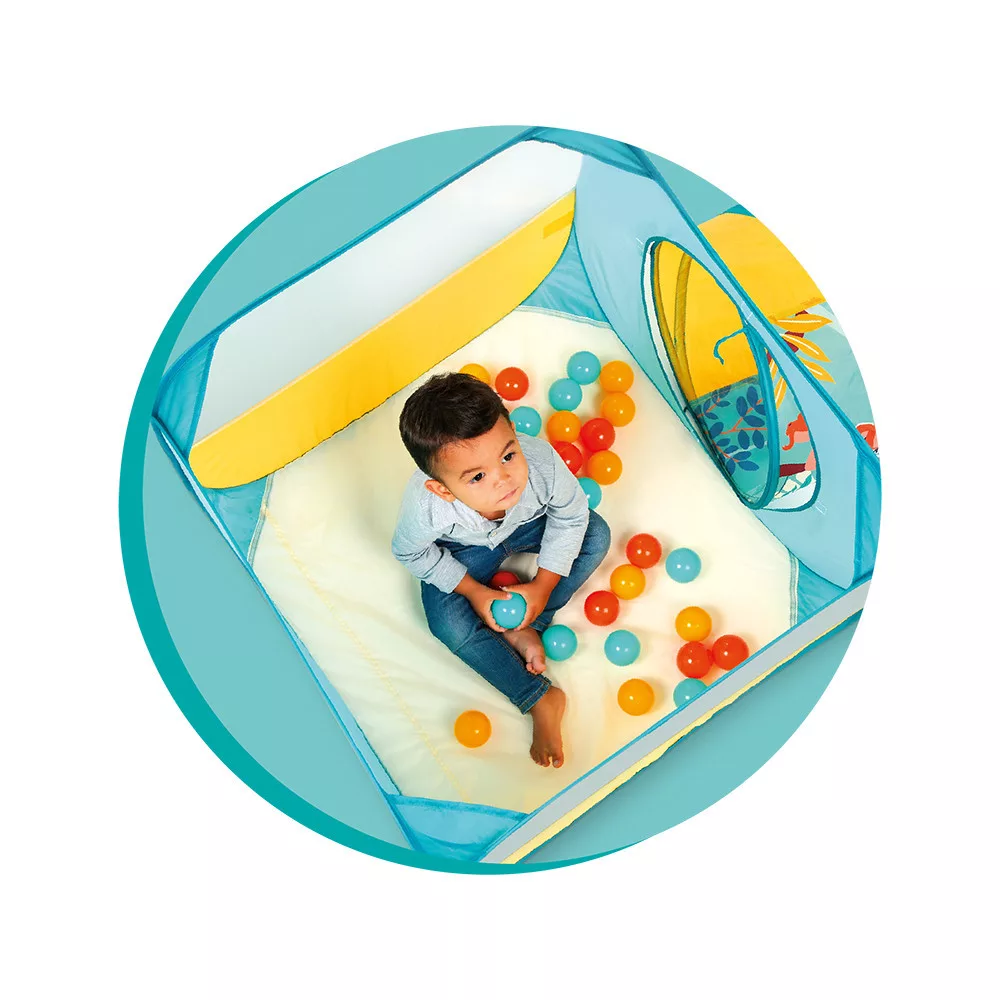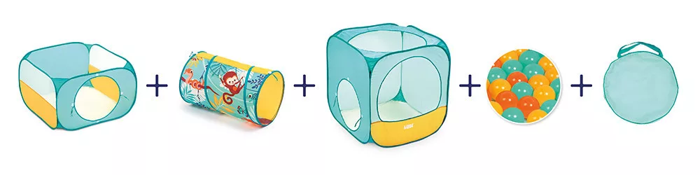 Két-három gyerkőc is elfér ebben a szuper játszópályán, ahol kényelmesen és biztonságosan szórakozhatnak. A készlet három részből áll: egy kockából, egy alagútból és egy labdamedencéből. Ezeket szabadon összeállíthatják a kicsik, így minden nap új kalandpályát építhetnek! A könnyű és rugalmas szerkezet egyszerűen összeszerelhető és szétnyitható, így pillanatok alatt készen áll a móka.