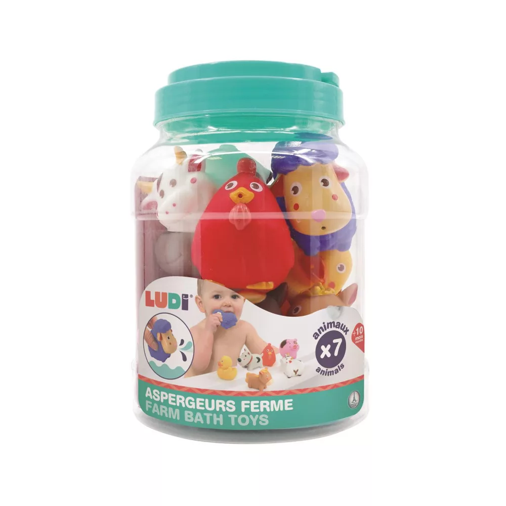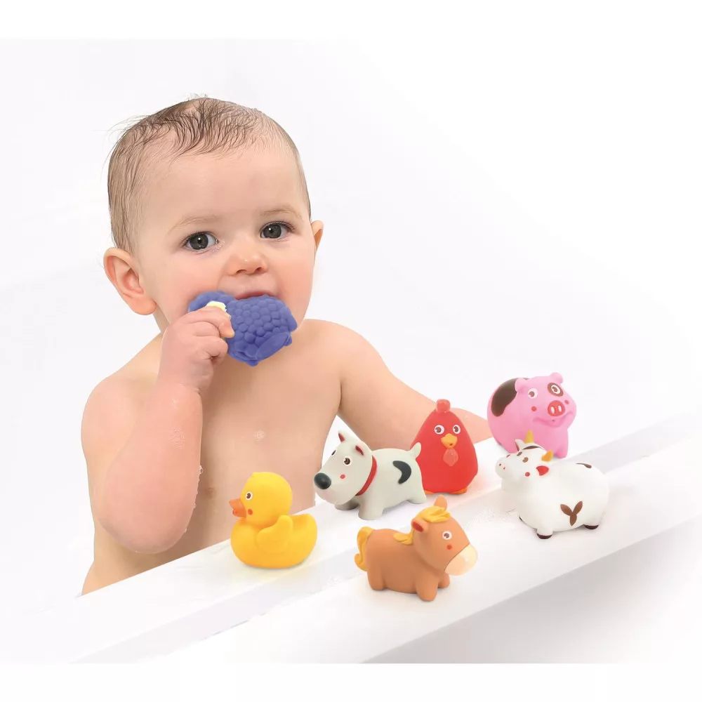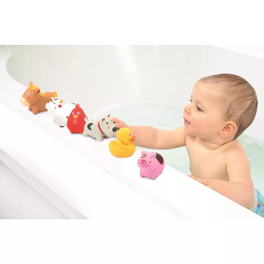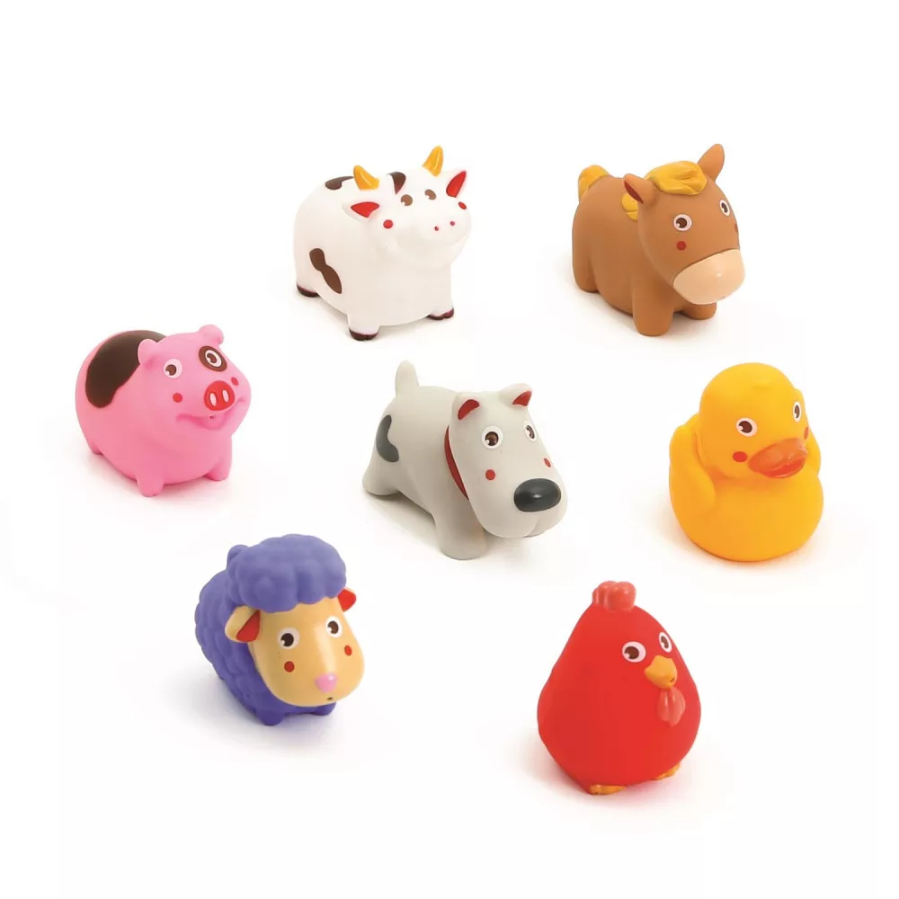 Ez a kedves és színpompás 7 különböző farmon élő állatot tartalmazó készlet, minden kisgyerek szívébe belopja magát. Anya is kedvelni fogja őket, mert egy praktikus tárolóban érkezik, melyben kis helyet foglalva is elférnek. Az állatokkal a fürdőkádban spriccelni is tudtok.