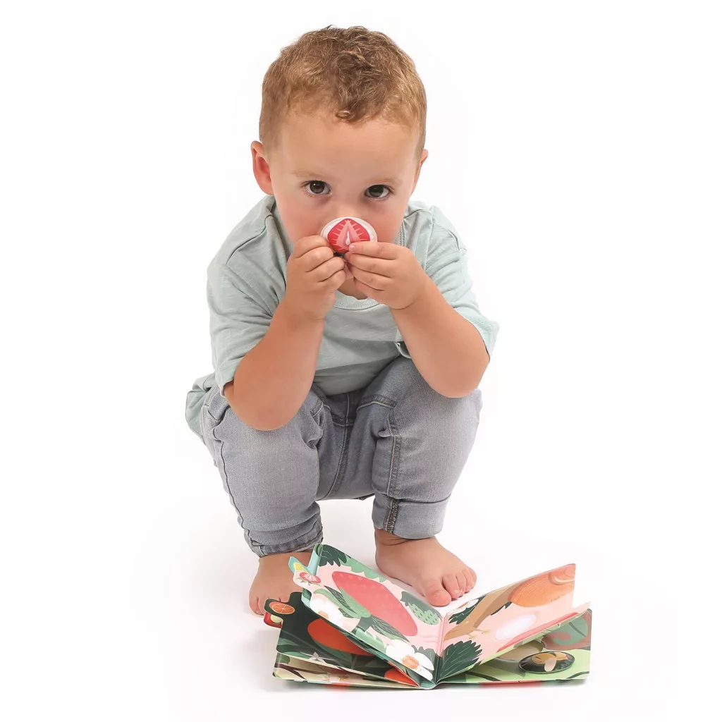Saját tippünk: Ha már sokat játszottatok a könyvvel és gyermeketek, könnyedén kitalálj az illat alapján a gyümölcsöt. Játszatok szembekötősdit.