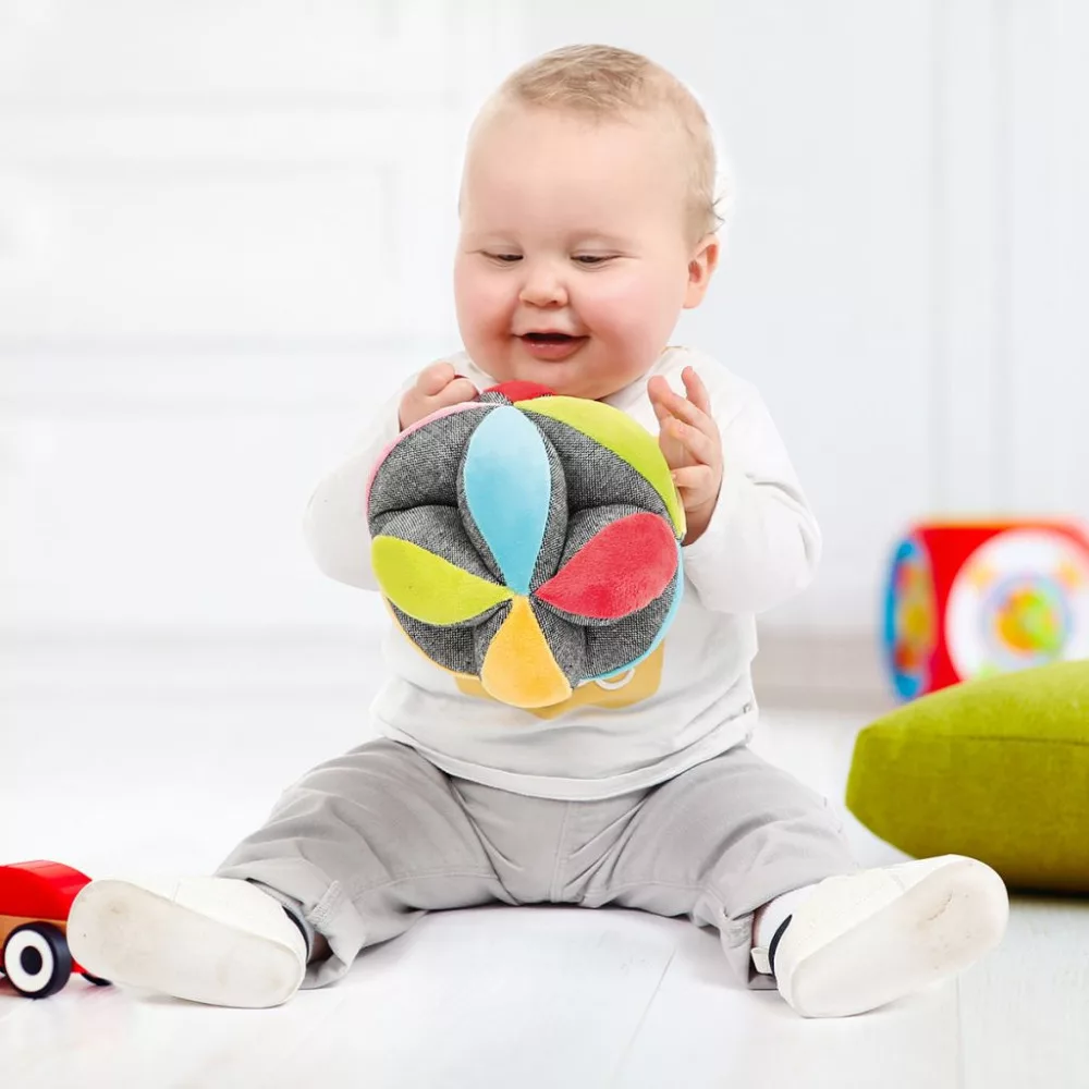Ez a szívárnyány minden színében pompázó puha készségfejlesztő labda, minde kisbaba kedvence lesz. Nem csak színeinek köszönheti, hogy felkelti a kisgyermekek figyelmét, de úgy lett kialakítva, hogy mindig könnyen kézbe lehessen venni. A 12 párnácska biztosítja, hogy gyermekünk könnyedén megmarkolja bárhol ezt a labdát ezzel is fejlesztve kézügyességét.