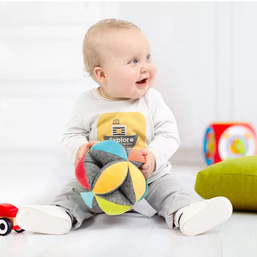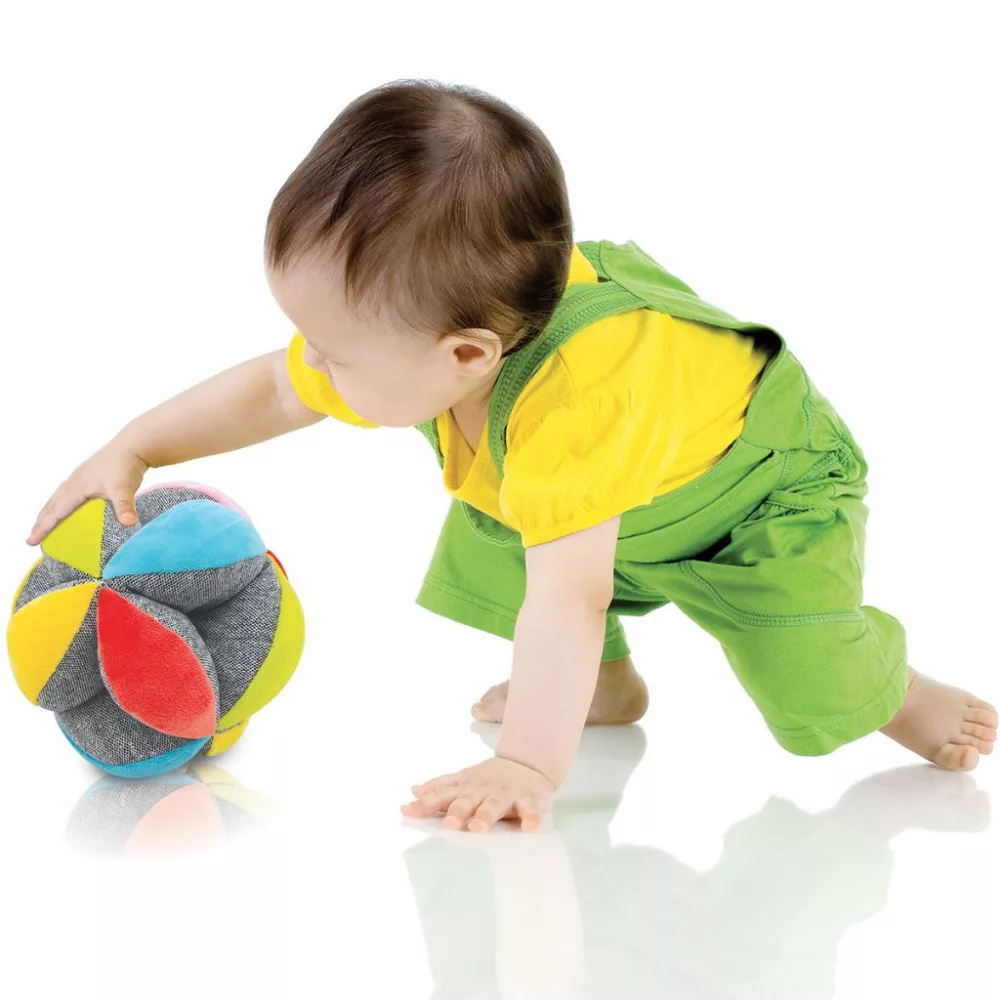 A labdában rejtőzik egy kis csörgő is, mely kellemes hangjával még jobban felkelti babánk érdeklődését.