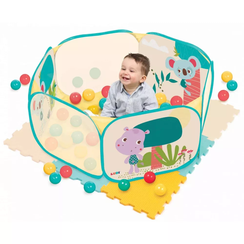 Készíts puha és színes játszóteret a babádnak a Ludi labdás és szőnyeges játéktérrel! Ez a vidám játék 9 egymáshoz illeszkedő habszivacs lapból, 40 labdából minden színben és egy pop up labdamedencéből áll. A babád kedvére kúszhat, mászhat és labdázhat a puha szőnyegen, miközben fejlődik és szórakozik.