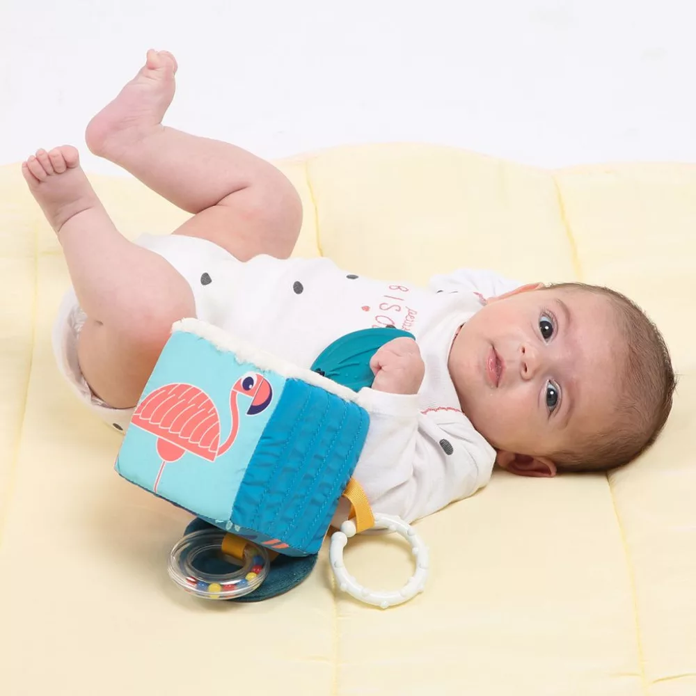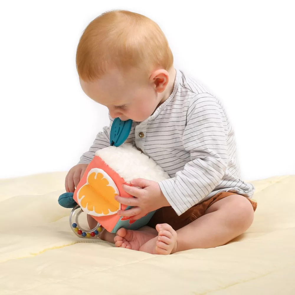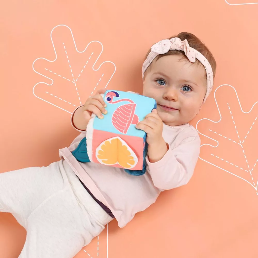 Sokszínű szórakozás a legkisebbeknek! A "LEvelekl" Játékos kocka tökéletes választás a 3 hónaposnál idősebb babáknak, hiszen rengeteg játéklehetőséget kínál. Ez a puha kocka különböző textúrákkal és izgalmasleveles-motívumokkal van ellátva, amivel igazi felfedezőútra indulhat babája.