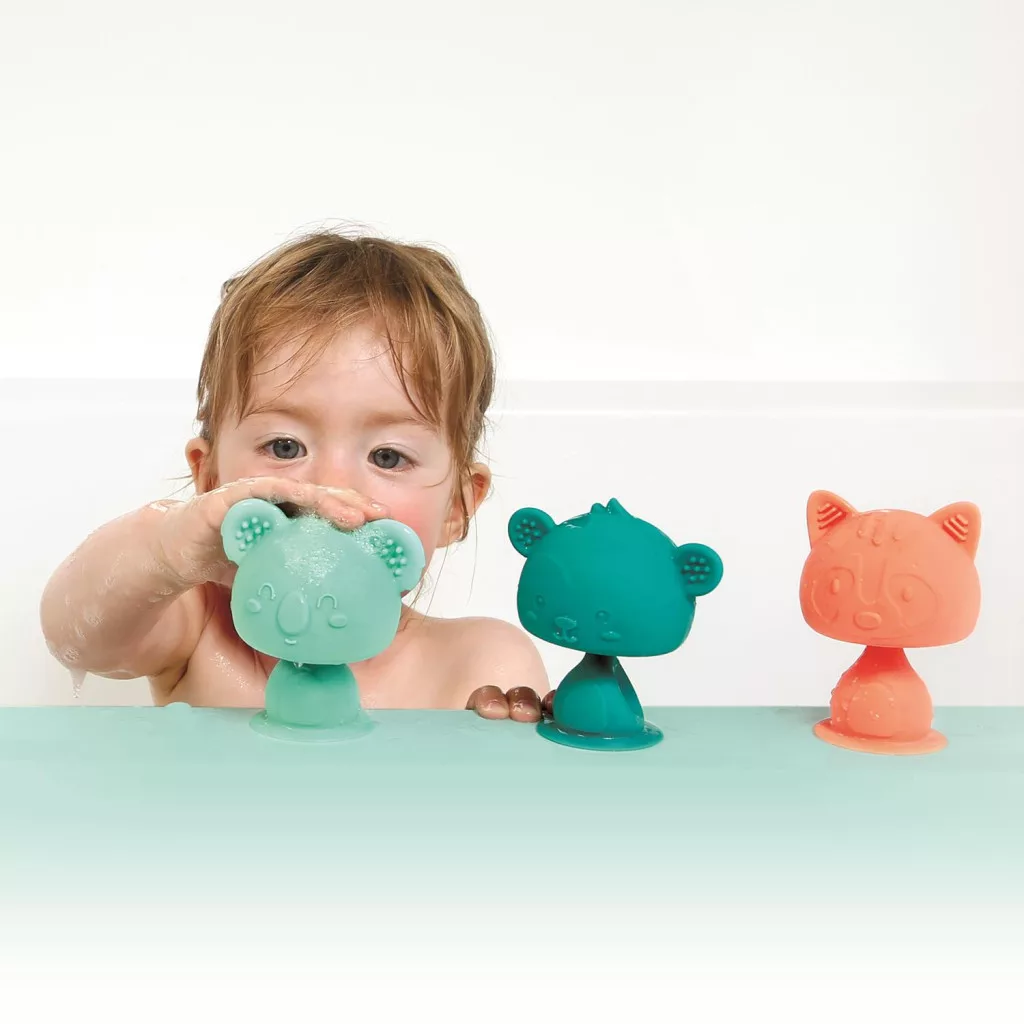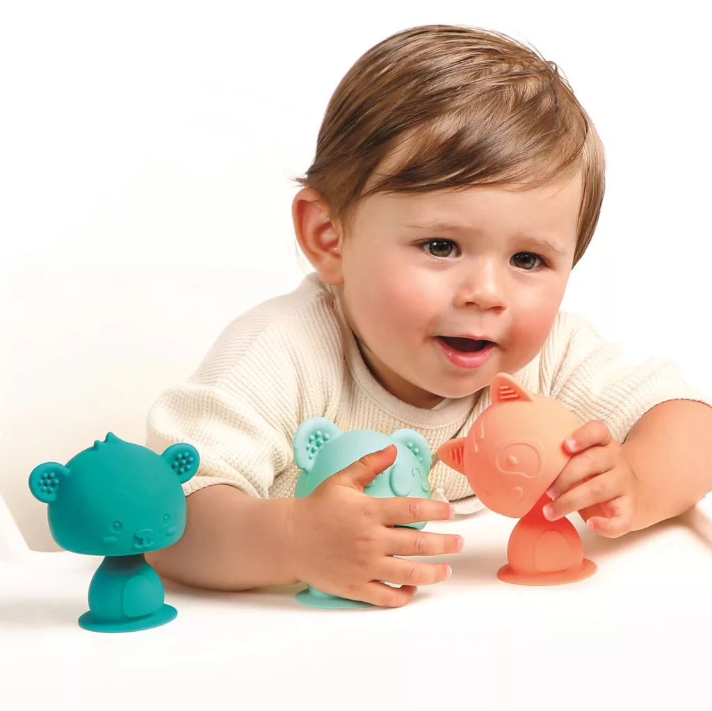 A LUDI Swing Pop állatkái, bármilyen sima felületre könnyedén odatapnak, így bárhol szórakoztathatja kisbabádat, legyen szó az etető székről vagy a fürdőkádról. A cuki koala, mosómedve vagy majmocska szuper puha és strapabíró anyagból készültek. Élénk színeiknek és kellemes tapintásuknak nem tudnak ellenállni a babák. Kedvükre hajlíthatják és rágcsálhatják őket.