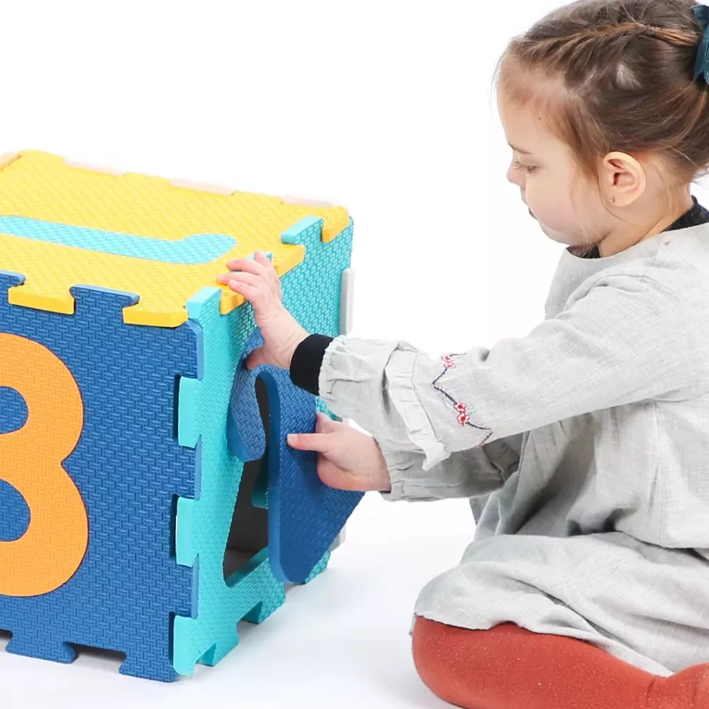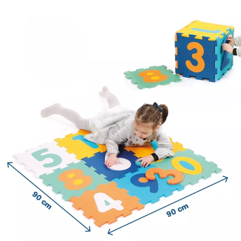 Ez a csodás szivacsszőnyeg kilenc nagyméretű, egymásba illeszthető elemből áll, melyekből egy 90 x 90 cm-es, puha játszófelületet varázsolhattok. Tökéletes hely a kúszáshoz, mászáshoz és a kedvenc játékokkal való foglalatoskodáshoz! A vastag (1,2 cm-es) elemek nemcsak kényelmesek, de szigetelik a hideget és elnyelik az eséseket is, így a legkisebbek is biztonságban fedezhetik fel a világot. Ráadásul a szőnyeg higiénikus, könnyen tisztítható, és akár a szabadban is használható!