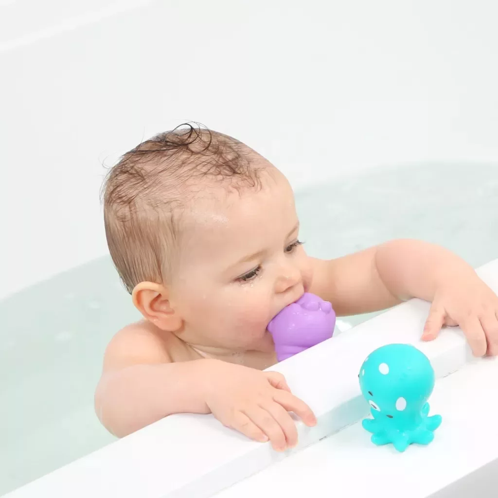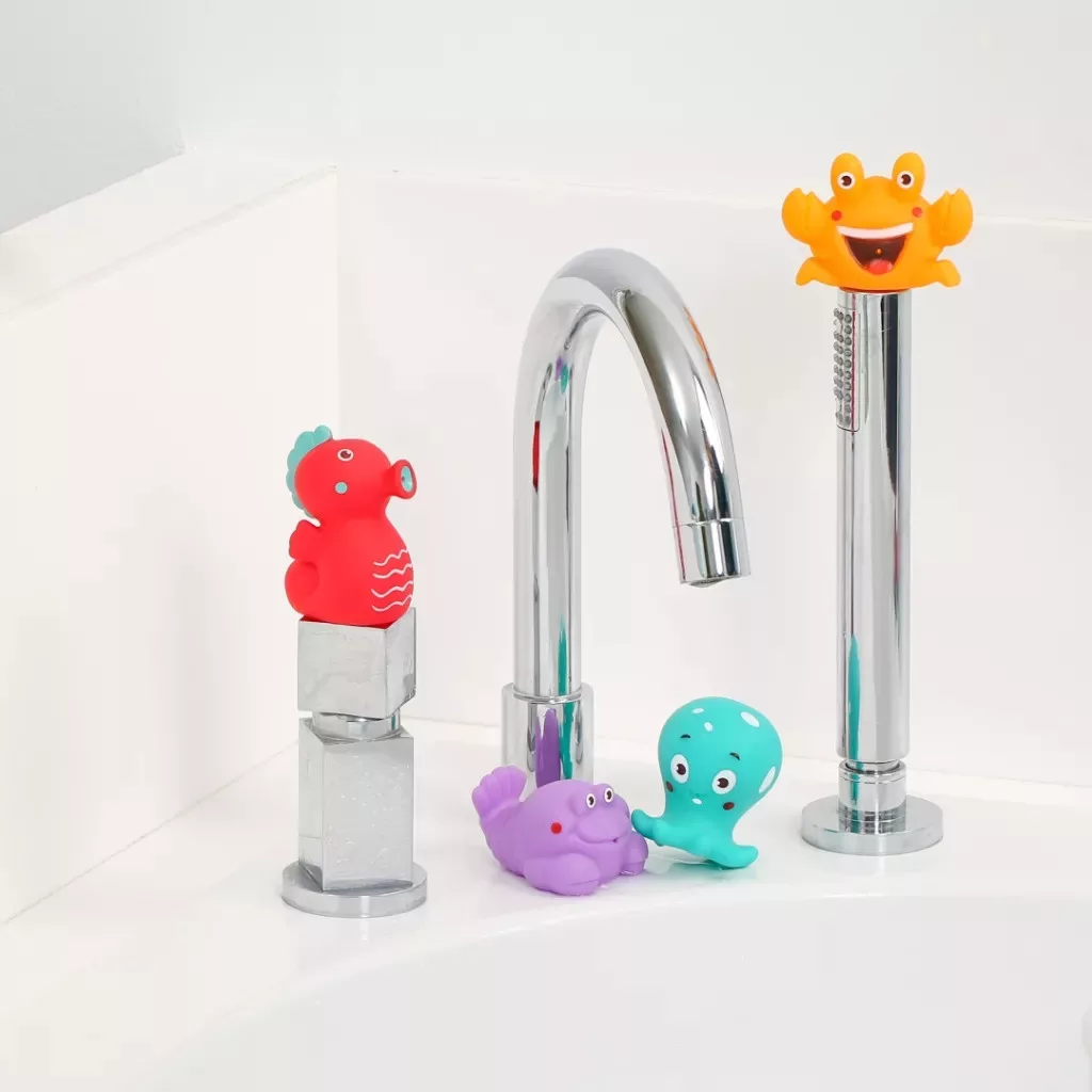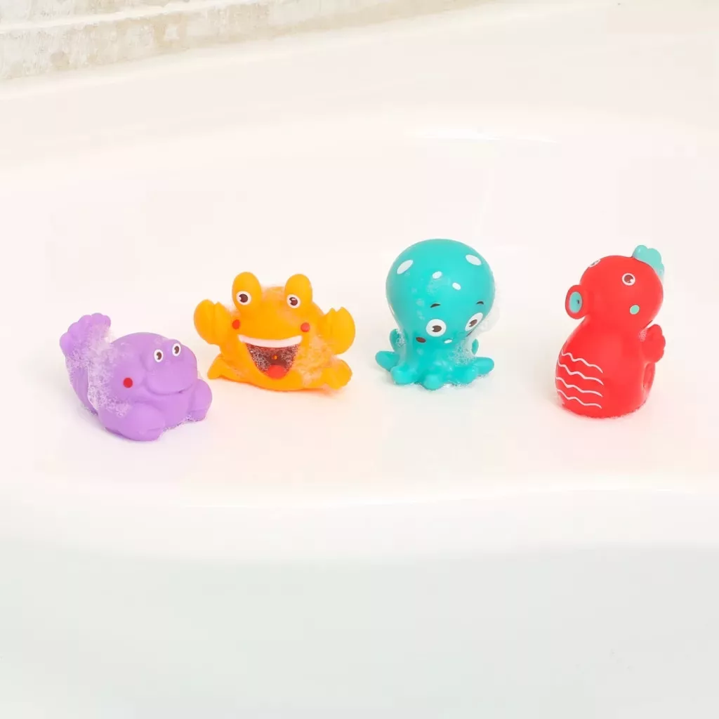 Ez a kedves és színpompás 4 különböző tengeri állatot tartalmazó készlet, minden kisgyerek szívébe belopja magát. Anya is kedvelni fogja őket, mert egy praktikus tárolóban érkezik, melyben kis helyet foglalva is elférnek. Az állatokkal a fürdőkádban spriccelni is tudtok.