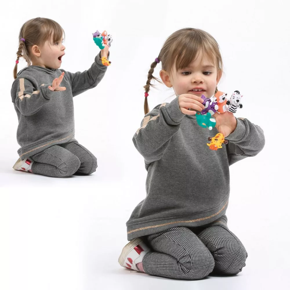 Készüljön fel vidám kalandokra a "Savannah" ujjbábokkal! Ez az 5 kis ujjbábból álló készlet rengeteg mókát és nevetést hoz a gyermekével töltött pillanatokba, legyen szó fürdésről, lefekvésről, vagy akár utazásról.