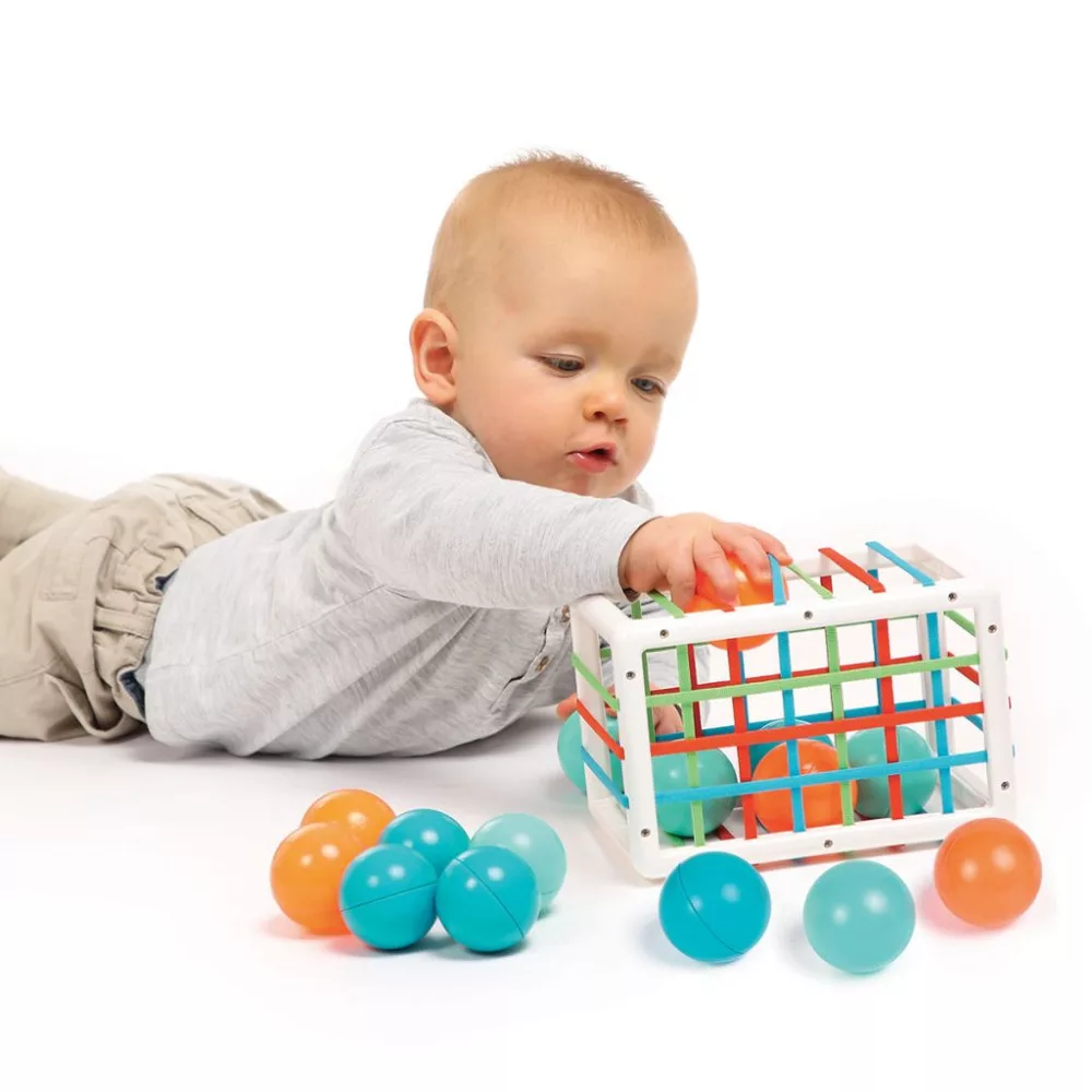 • A színes, rugalmas szalagokból készült doboz könnyen megfogható kis kezek számára