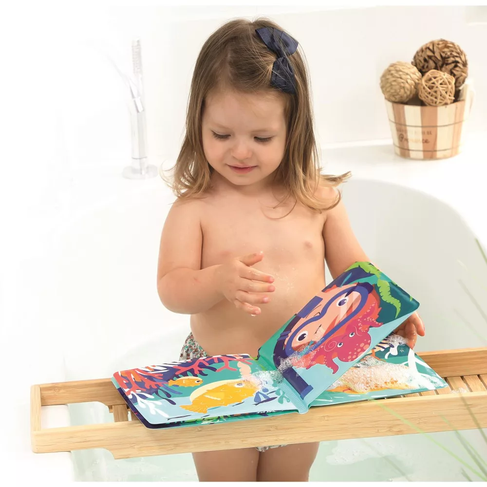 Szeretnél egy szuper fürdős könyvet gyermekednek, melyben nem csak a képeket tudja nézegetni? Akkor ezt a színpompás víz alatti világot bemutató kis könyvet neked ajánljuk. Ebben ugyanis, nem csak szép kéket tudtok nézegetni, de olyan felületekkel rendelkezik, melyeket gyermekünknek kell a vizes kiss ujjacskájával kiszíneznie. Ha a könyv megszárad kezdődhet újra a móka.