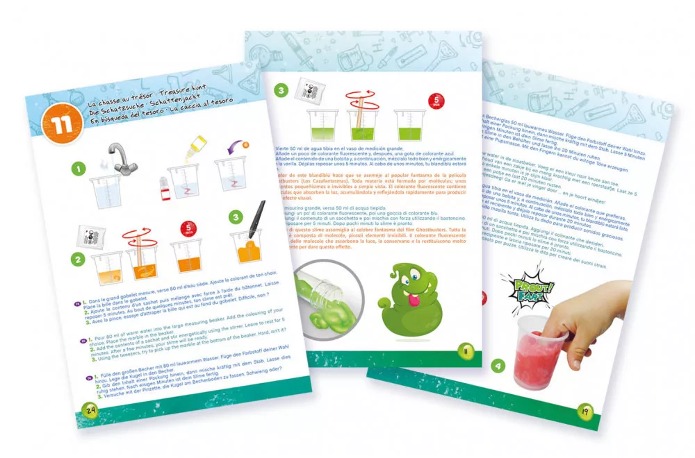 A csomag illusztrált színes jegyzetet tartalmaz, amellyel könnyedén elkészítheted a slime-okat.