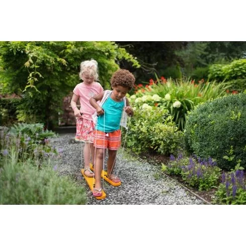 Ez a szuper nyári sí páros lépegető izgalmas szórakozást ígér a kicsiknek. A fogantyúk segítségével két gyermek csak egyszerre tud haladni vele. A megszokottól eltérően, az azonos oldali végtagok egyszerre mozdulnak, ezért fontos, hogy összehangolódjanak, mert csak így tudnak együtt lépegetni.