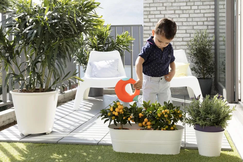 Gyermek locsolókanna újrahasznosított műanyagból készült BPA , latex és flatál mentes. Díjnyeretes formatervezés, ikonikus és időtálló designe. Ergonomikus fogantyú, kiömlésgátló kialakítás. Permetező és kiöntő egyben. Használható a kádban, kertben és a strandon.