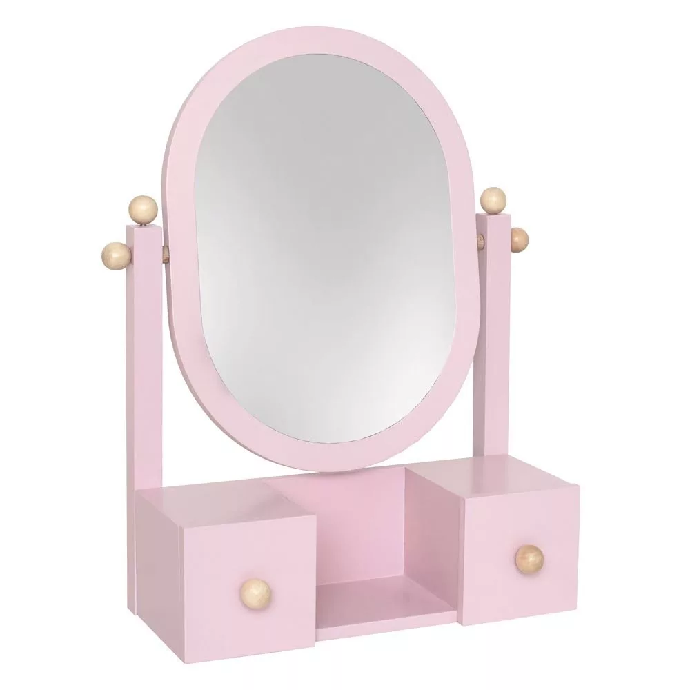 Most könnyedén tárolhatod ékszereidet, hajgumijaidat és hajpántjaidat ebben az aranyos kis fiókos tükörben. A tükörben két kicsi fiók található, a tükrös rész pedig előre és hátra dönthető. A fiókok között van egy apró rekesz, ahová egyéb apróságokat is tehetsz. Oldalain kis gombok is találhatók, amelyekre felakaszthatod nyakláncaidat és karkötőidet.