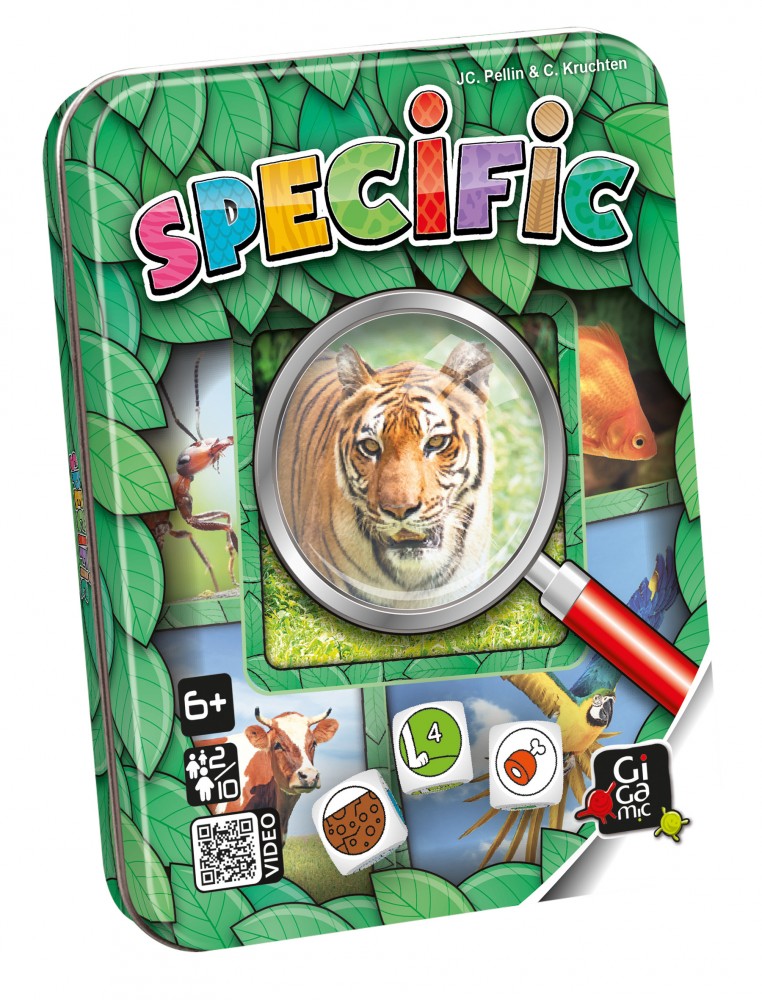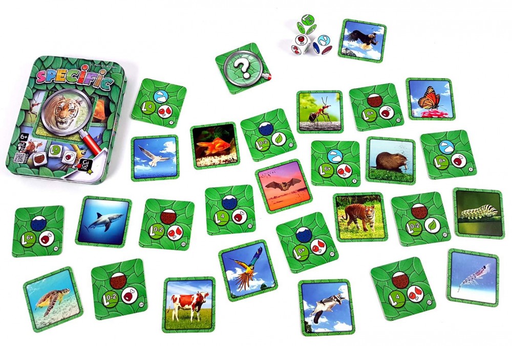 A Specific ugyan nem kimondottan oktatójáték, de a figyelem és gyorsaság mellett némi memória azért nem árt hozzá. A játékosok három kockával dobnak, amelyek meghatározzák, melyik állatot is keresik. Húsevő, négylábú, és a hegyekben él? Vagy esetleg növényevő, és a szavannán nyargal? Akárhogy is, a tulajdonságok mindig csak egy állatra igazak, és ennek megfelelően kell lecsapni az asztalra kitett kártyákra. A Gigamic kiadó többi fémdobozos játékához hasonlóan a Specific is egyszerű, praktikusan hordozható társasjáték, ráadásul a több nehézségi szintnek köszönhetően minden korosztály számára remek szórakozást nyújt!