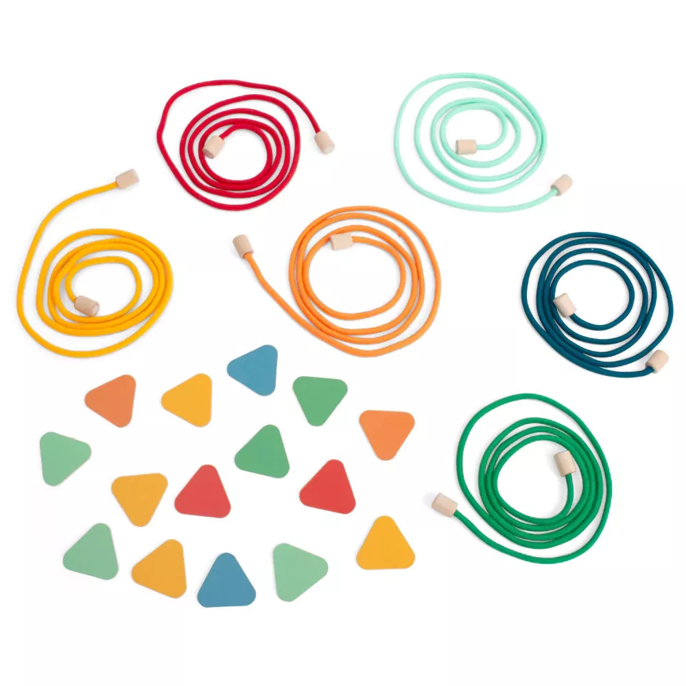 Vidám mozgásos színfelismerő játék. Helyezzétek el a színes köteleket a földön, hogy összekapcsolva egymás mellé, vagy külön-külön köralakot formázva teszitek, rátok van bízva. A színes zsetonokat tegyétek a zsákba, aztán jöhet a szórakozás, és testmozgás. A játékmester húzzon ki egy zsetont a zsákból, a játékosok feladata megtalálni a hozzá tartozó kötelet, és a lehető leggyorsabban odaszaladni. Aki elsőként éri el a megfelelő színű kötelet, megkaphatja a zsetont. Vajon ki lesz a végén a nyertes? Te elég szemfüles és gyors vagy?