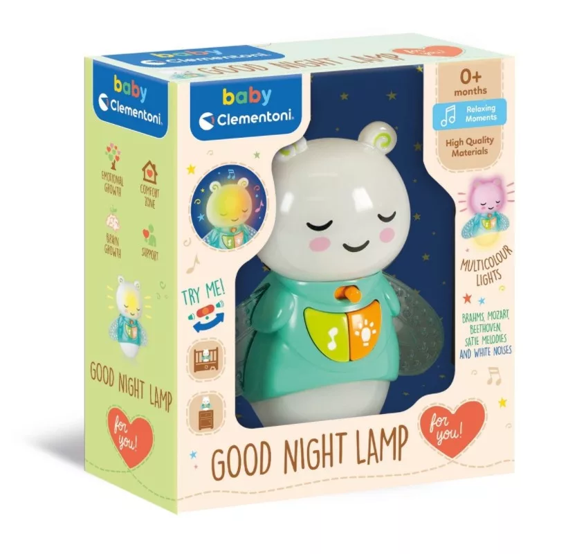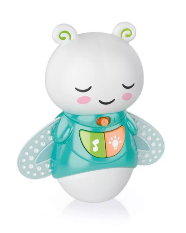 A szentjánosbogár jó éjt lámpa fényei és lágy dallamainyugtatólag hatnak, és kellemes hangulatot teremt a baba szobájában. külön gombbal kapcsolhatók a hangok, és a fények. Altatódalok, vagy fehér zaj közül lehet választani, valamint kétféle hanerő állítható be. A hangokat, illetve a zenét ki is kapcsolhatjuk, és használhatjuk csak a fényjátékot. A fényeket irányító gombok megnyomásával a fényerősség állítható.