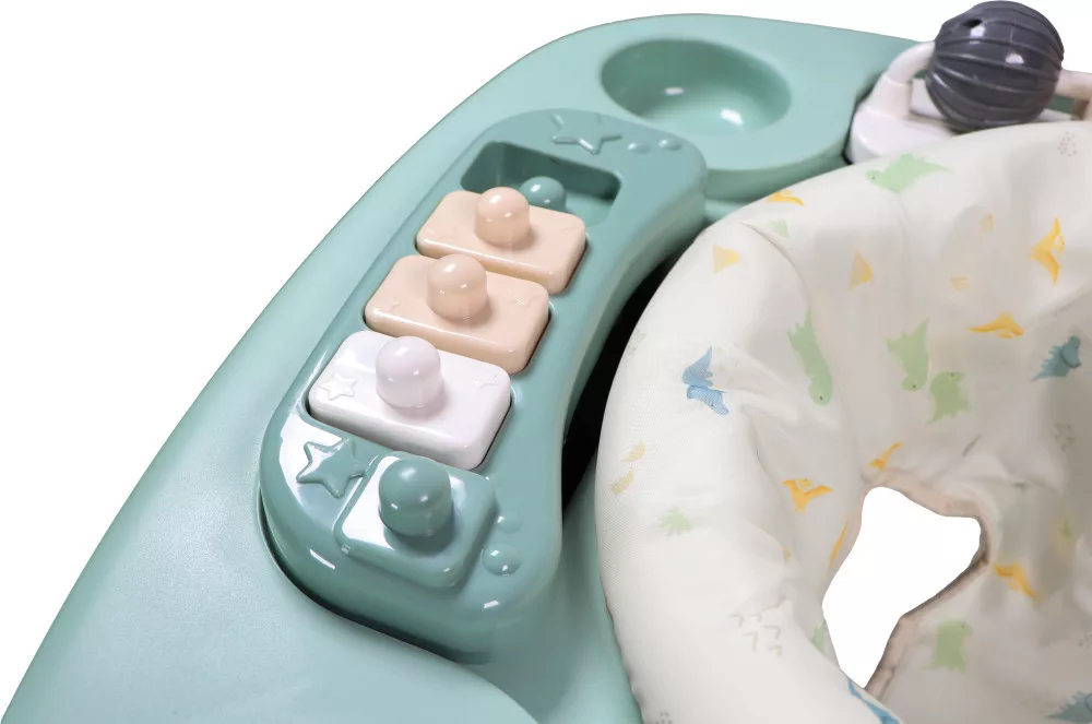 Kisbabád kíváncsi, energikus, és tele van energiával? Szeretnéd, ha egyszerre tanulhatna, játszhatna, és fejlődhetne? Akkor ez a 3 az 1-ben activity asztal tökéletes választás lesz számára! Ezzel a gyönyörű zöld színnes és dinoszauruszos üléshuzattal, minden kisfiú szívébe belopja majd magát.