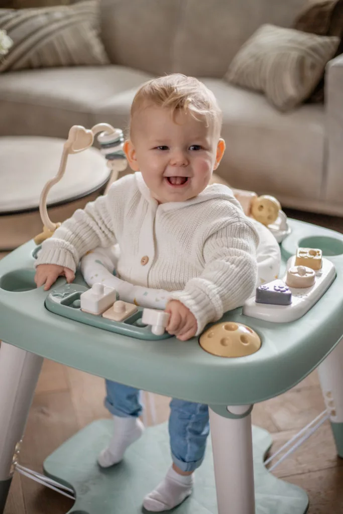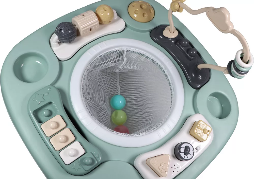 1. Foglalkoztató szék: Míg gyermekünk kicsi és még nem tud sétálni, addig használhatjuk székként is ezt az asztalt. Nagy segítségére lehet minden anyukának, hiszen míg mi ebédet főzünk, gyermekünk ott lehet mellettünk biztonságban. A rengeteg kiegészítő, pedig biztosan nem hagyja unatkozni gyermekünket. A lábtartót alulra gumikkal tudjuk rögzíteni így babánk még ugrándozni is tud majd a székben, ami biztosan rengeteg mosolyra ad majd okot.