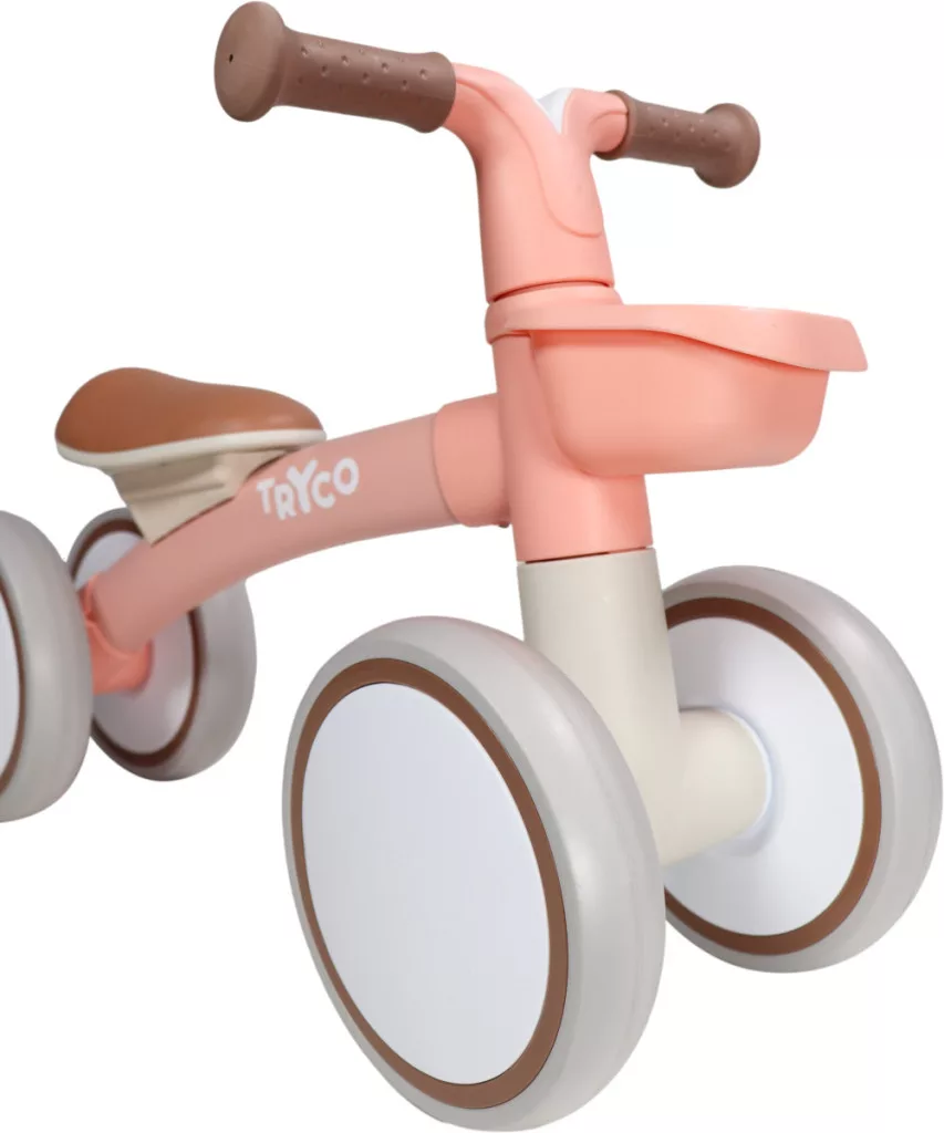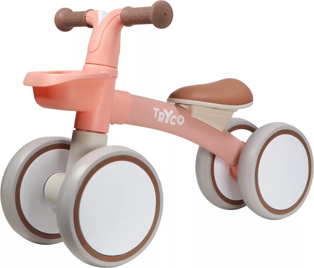 A Tryco első biciklijét a legkisebbeknek ajánljuk. 4 kerekének köszönhetően megfelelő stabilitást biztosít. Alumínium vázának köszönhetően a bicikli súlya 2,1 kg. A kormány markolata csúszásgátló felülettel van ellátva így biztosan markolhatja gyermekünk. És amivel biztosan belopja magát a kicsik szívébe az a kis tároló a bringa elején, így könnyen vihetik magukkal kedvenc játékukat is az útra, de akár egy kis kulacs vagy egy kis harapnivalót is tehetünk bele. Gyönyörű barack rózsaszín színével minden kislány kedvence lesz.