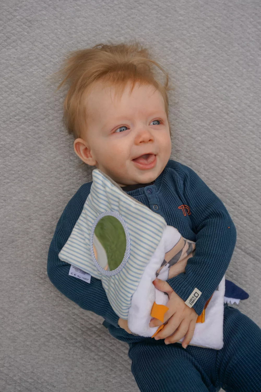 A legideálisabb választás a kisbabád számára, hiszen biztonsággal rágcsálhatják és fedezhetik fel a könyv lapjait. Kellemes, simogató anyaga, a mozgó részletek és a kis tükör is érdekessé teszi babánk számára.