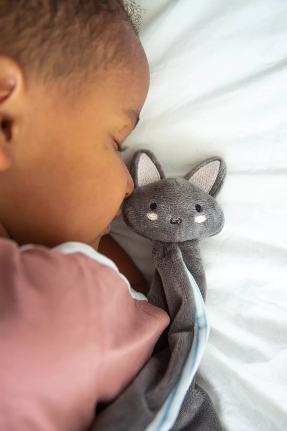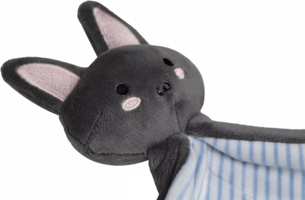 Ha nem egy szokványos szundikendőt szeretnél kisbabádnak, akkor ez az édes denevér nagyszerű választás lesz! Bruce a denevér nagyon puha plüss, és a szélein található matatható szalaggal, és fülekkel könnyen a kicsik kedvencévé válik.