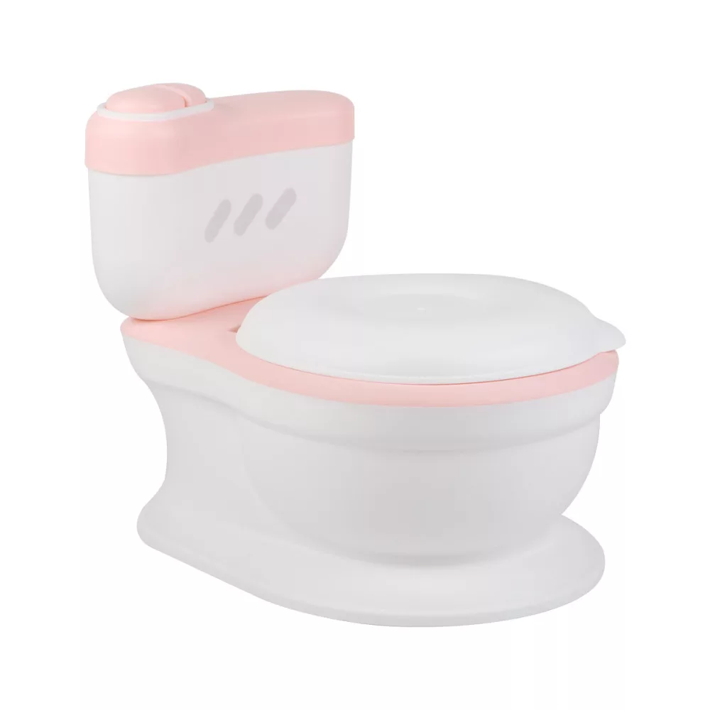 A szobatisztaság némelyik gyereknek könnyen megy, míg mások igen nehezen szoknak le a pelusról. Erre az élethű Wc formájú bilire, viszont minden kisgyerek szívesen fog ráülni. Ülőkéje puha párnázott, ami a maximális kényelemért felel és mindemellett még a dolguk végeztével úgy is tudnak tenni, mint a nagyok hiszen a gombok megnyomásával igazi lehúzó hangot ad ki a bili. Mi szülők is szeretni fogjuk, hiszen könnyen szétszedhető, kiüríthető és minden eleme tisztán tartható. Az öblítőtartályba még wc papírt is tudnunk betenni, hogy az mindig kéznél legyen. Ez a szép halvány rózsaszín bili, pedig biztos minden kislány kedvence lesz.