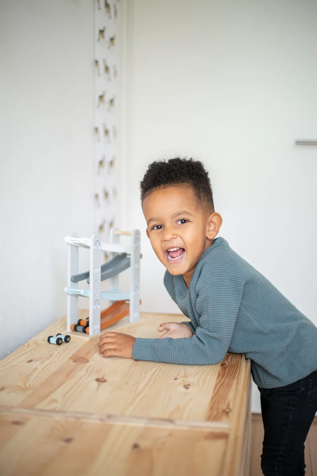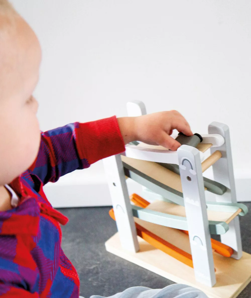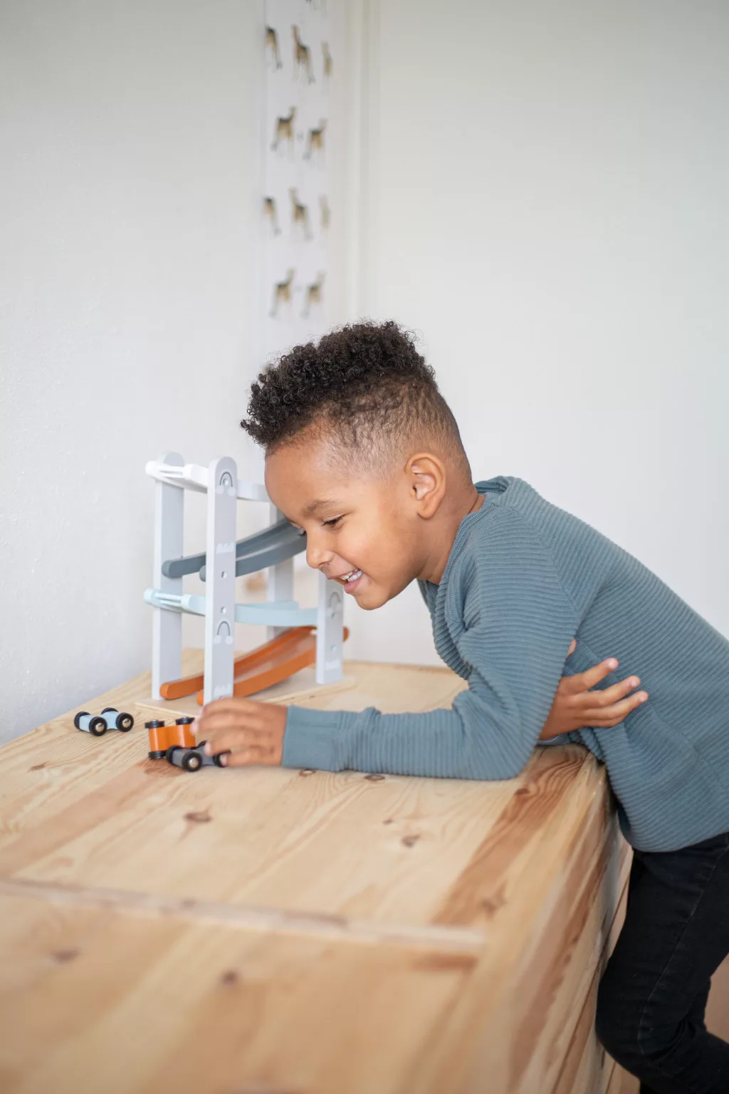 Engedd, hogy gyermeked elmerüljön a száguldó autók izgalmas világában ezzel a strapabíró, de mégis gyönyörű fa versenypályával, amely nemcsak szórakoztat, de fejleszti a finommotorikus készségeket is. A cikcakkban haladó autók mellett a szivárványminta és a modern színek garantáltan lekötik a kicsik figyelmét.