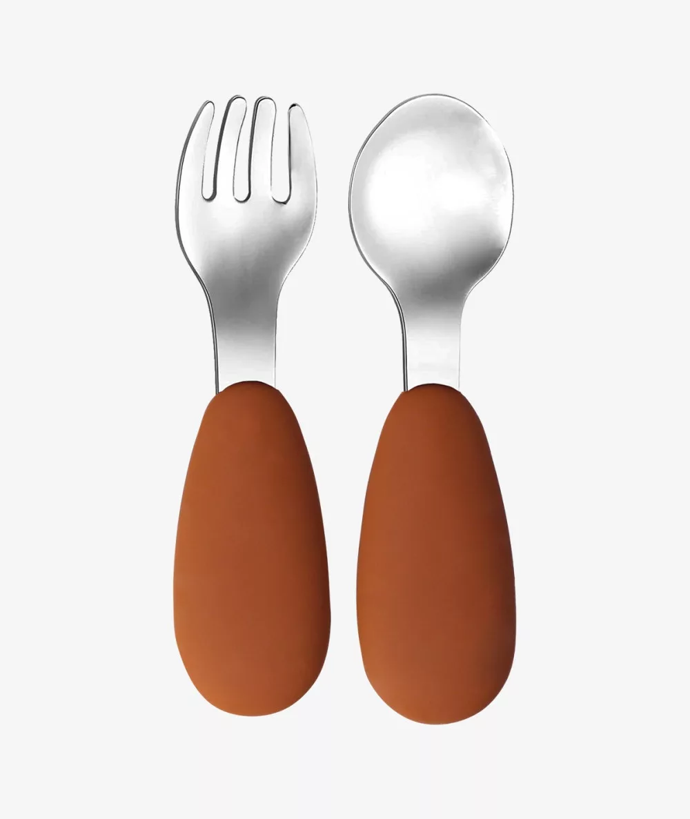 Tryco - rozsdamentes acél evőeszköz készlet narancssárga kanál és villa. Megtanítja a gyermeket önállóan enni. Méretének köszönhetően ideális a kis kezeknek. Praktikus és kényelmes.