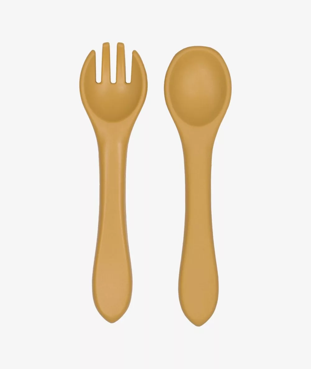 Tryco - szilikon evőeszköz készlet aranyszínű kanál és villa. Ha már kezditek a hozzátáplálást, akkor ez a készlet nagyszerű választás lesz. Anyagának köszönhetően, nem fogja megsérteni kisbabádat és neki is a kezébe adhatjuk, hogy barátkozzon vele, hiszen teljesen biztonságos. Szép arany színe biztosan felkelti kisbabánk érdeklődését. Mosogatógépben is mosható.