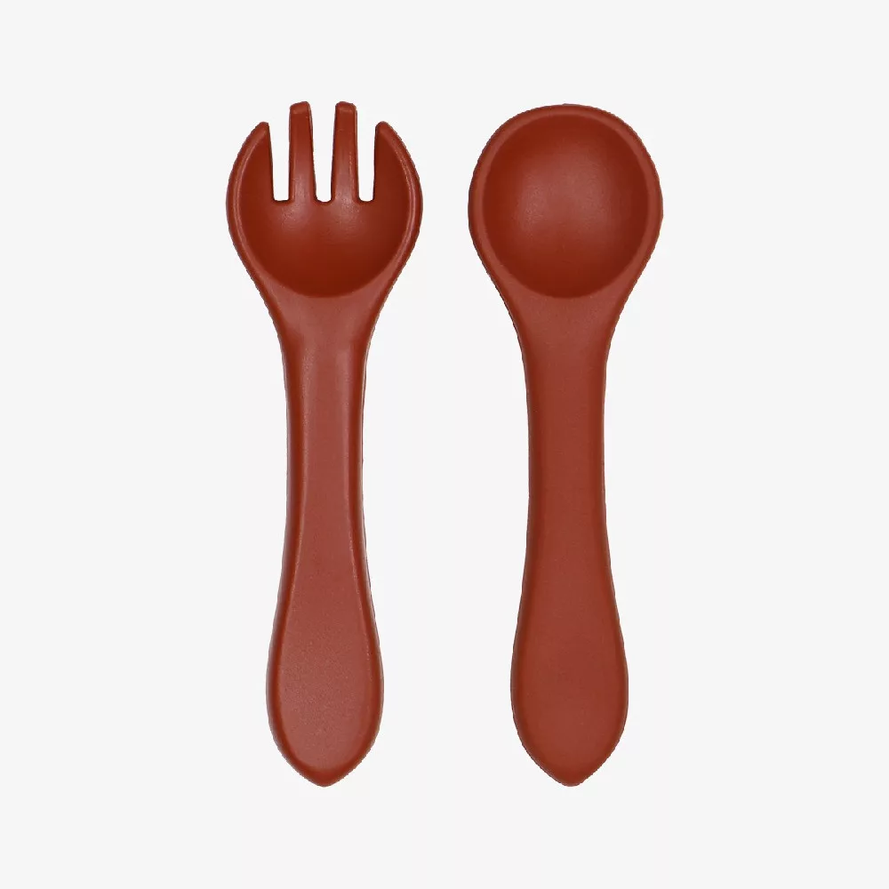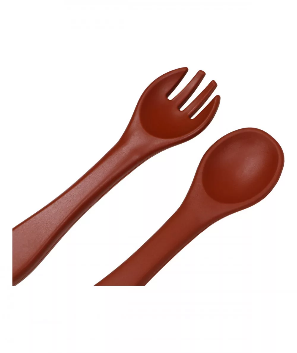 Tryco - szilikon evőeszköz készlet bordó kanál és villa. Biztosán segít gyermekünknek megismerkedni az evőeszközök használatával. Puha anyagával és lekerekített formájával garantáltan nem sérteni meg kisbabánkat. Intenzív színe pedig biztos fel fogja kelteni gyermekünk érdeklődését.