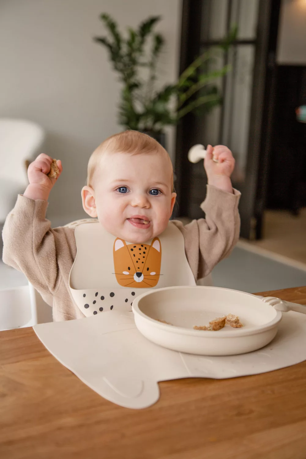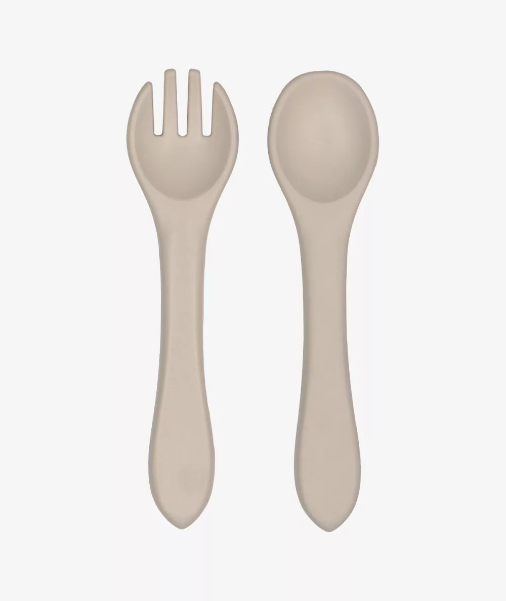 Tryco - szilikon evőeszköz készlet homokszínű kanál és villa. Ez a készlet kiválóan alkalmas arra, hogy kisbabánk elkezdjen megismerni az evőeszközökkel. Vékony nyele könnyen elfér babánk kezében és anyagának köszönhetően pedig nagyon biztonságos, nem tudja megbökni magát vele, tapintása kellemes. Mosogatógépben is mosható. Színe kellemes és naturális.