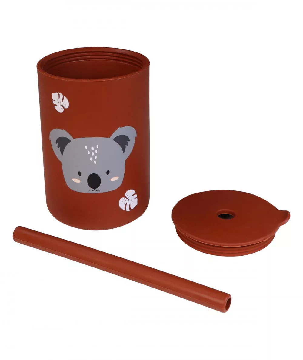 Ez a cuki koalás szilikon pohár biztos elnyeri majd gyermekünk tetszését! Számos előnnyel rendelkezik a pohár pl.: kellemes puha tapintású, rácsavarható kupakja nem engedi kiömleni a folyadékot ha feldől, mosogatógépben is mosható. Színének és mintájának köszönhetően uniszex, így a kistesó is megörökölheti.