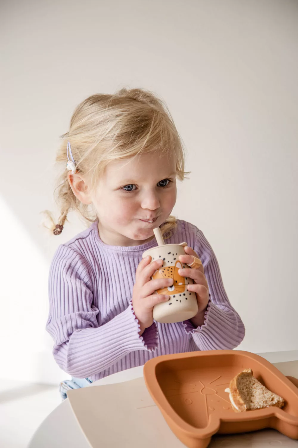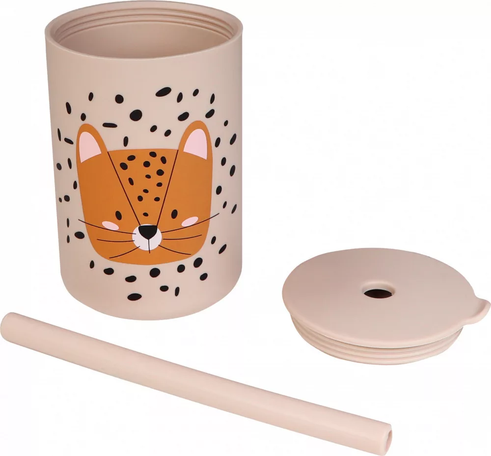 A Tryco - szilikon pohár kedves leopárdos mintával rendelkezik. Tökéletes választás a kicsi kezekbe, mivel nem törik, nem lötyög belőle ki semmi, nem csúszik. Időtálló és környezetbarát választás. Egészen kis kortól használható és gyermekünknek sokáig kedvence lesz. Puha tapintású anyaga mosogató gépben is mosható.